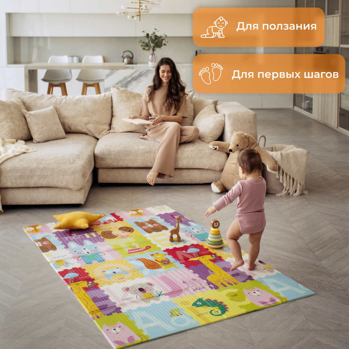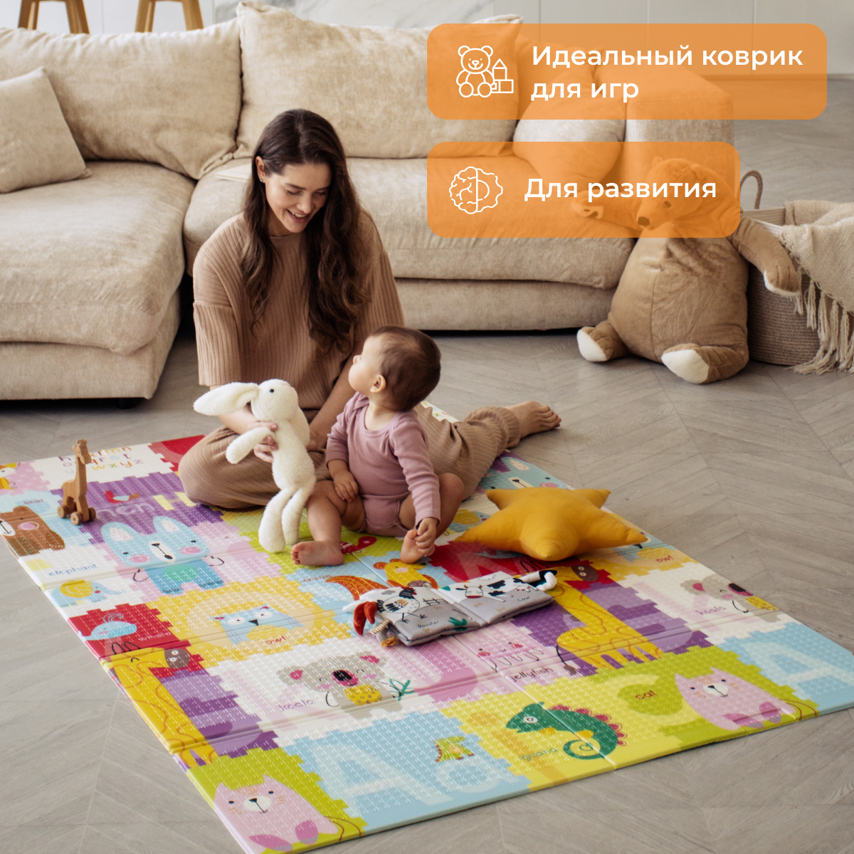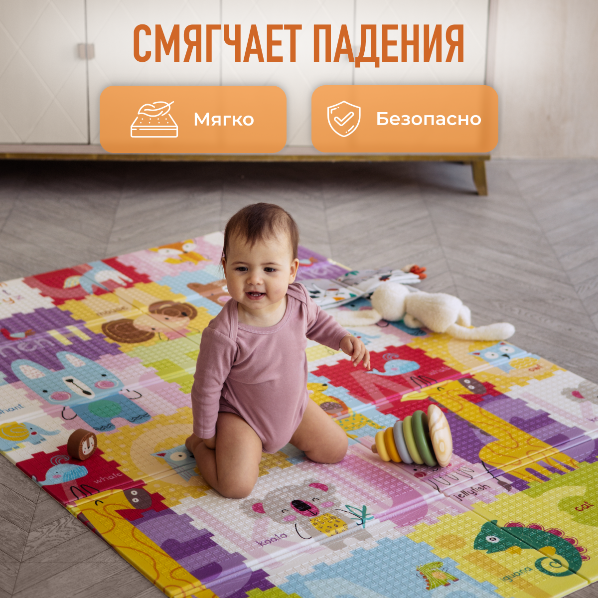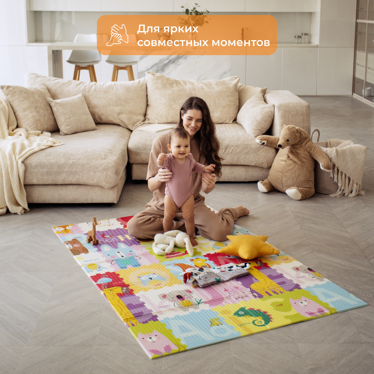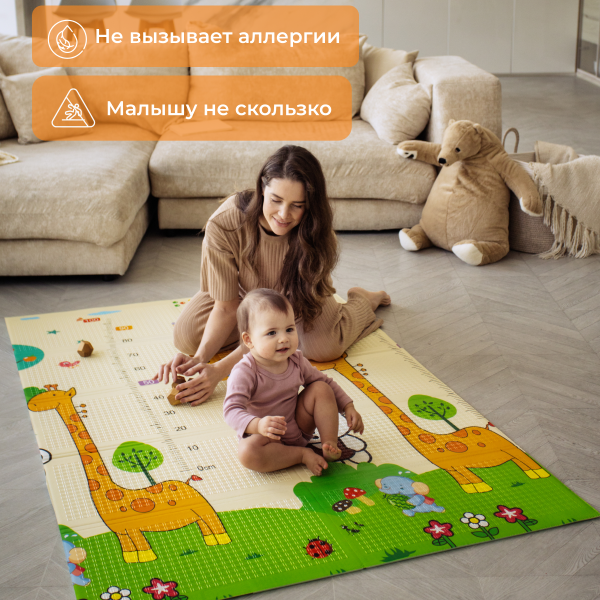Купить Детский коврик для ползания складной двухсторонний игровой термоковрик Mamagoods 120х180 Жираф и зверята