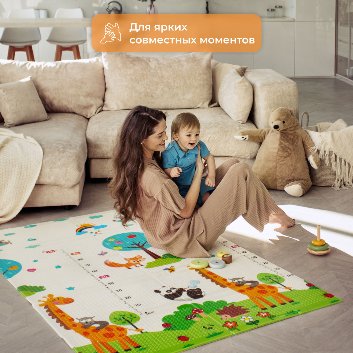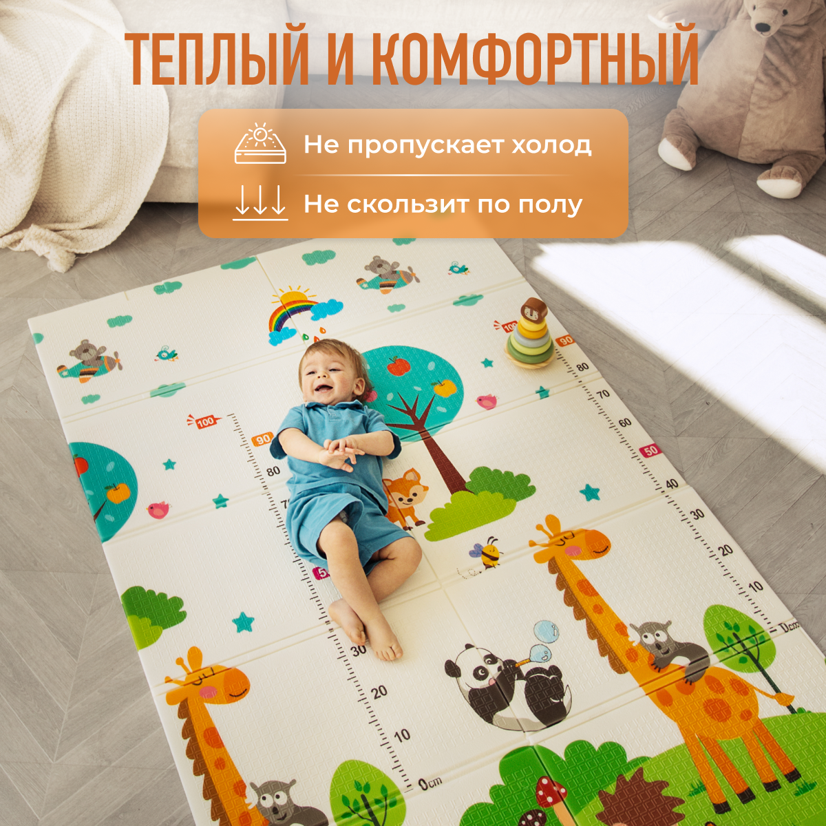 СохранитьДетский коврик для ползания складной двухсторонний игровой термоковрик Mamagoods 120 х 180 Городок и жираф интересное: