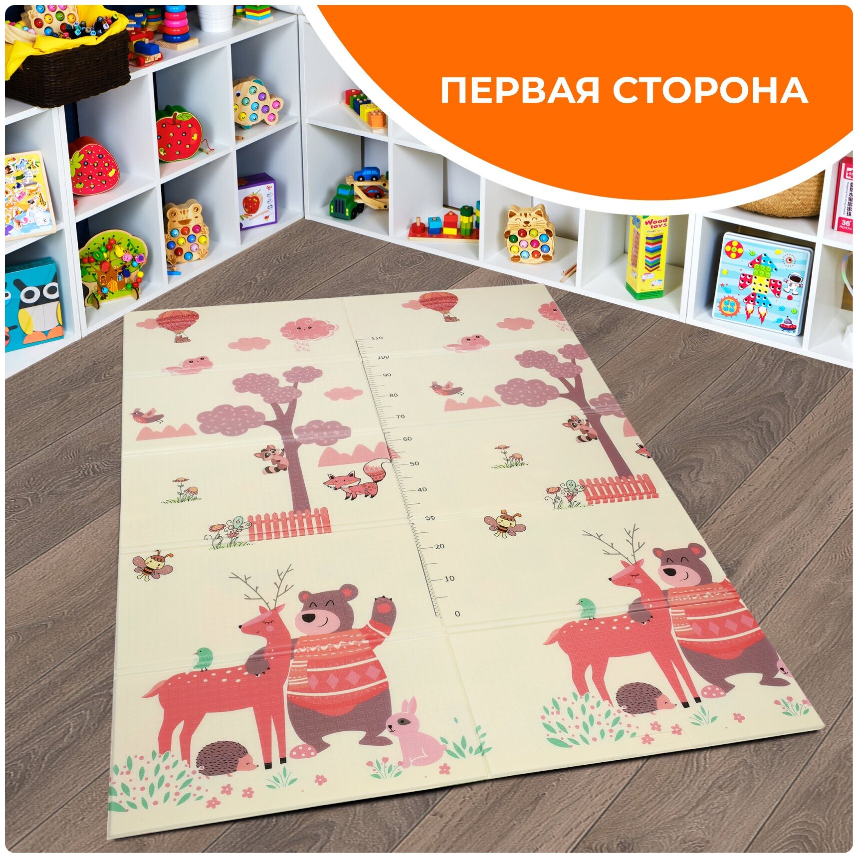 Купить Детский коврик для ползания складной двухсторонний игровой термоковрик Mamagoods 120 х 180 Лес и мишка
