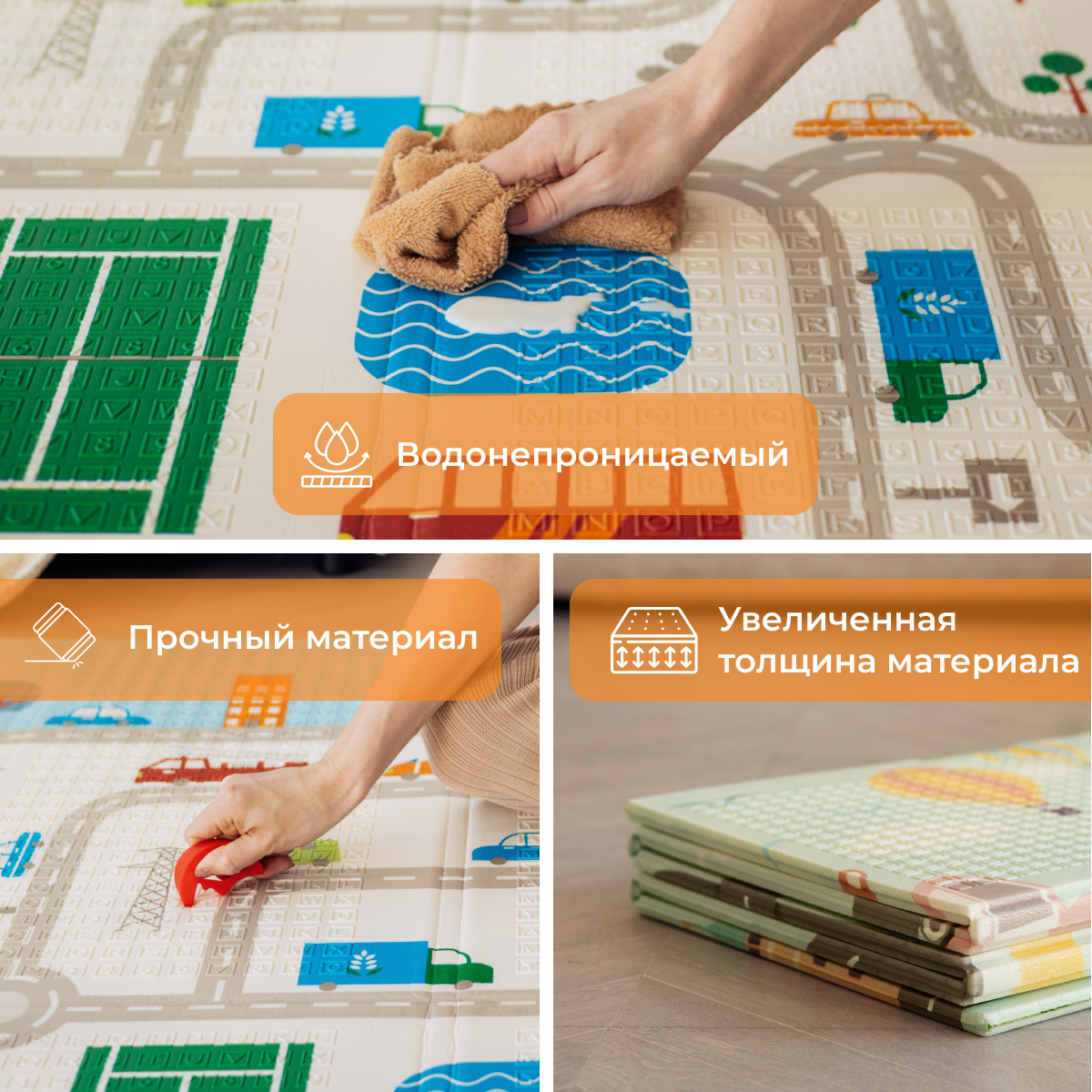 Детский коврик для ползания складной двухсторонний игровой термоковрик Mamagoods 120х180 Город и зверята