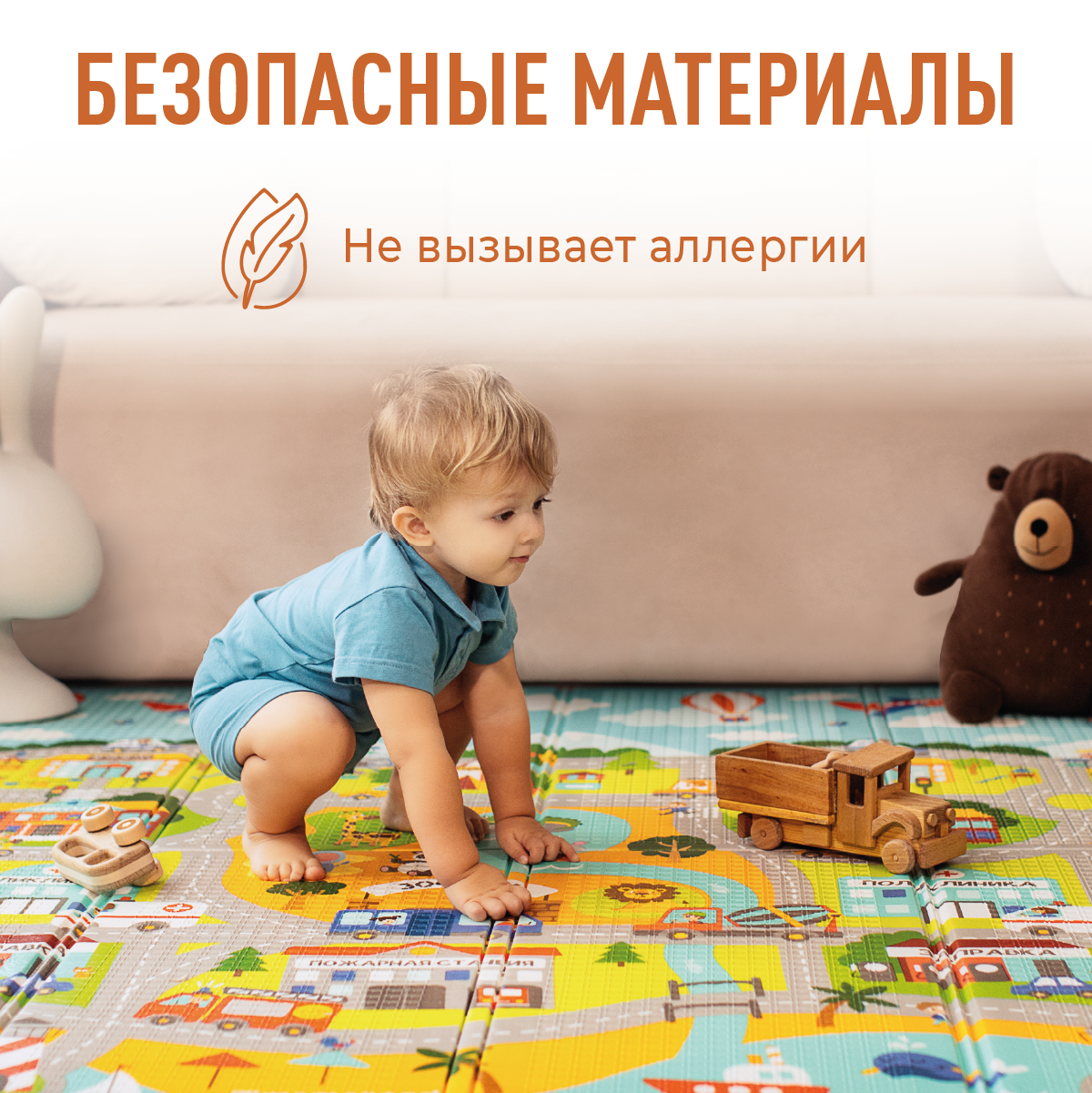СохранитьРазвивающий коврик детский Mamagoods для ползания складной игровой 180х200 см Космическая Одиссея и Карта Города интересное: