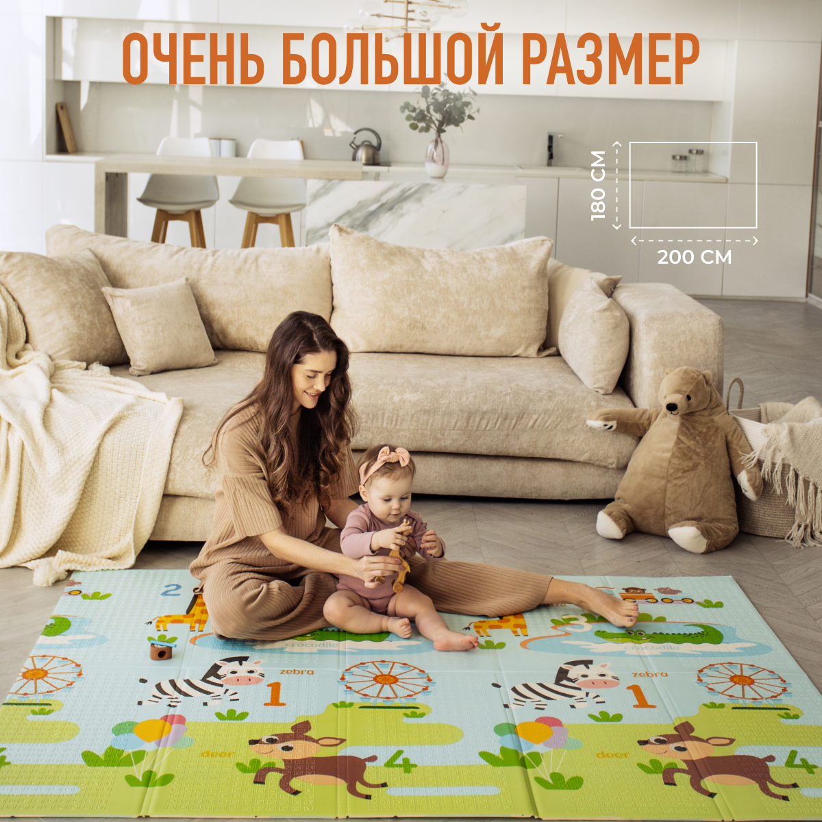 Детский коврик для ползания складной двухсторонний игровой термоковрик Mamagoods 180 х 200 Жирафы и Зверята