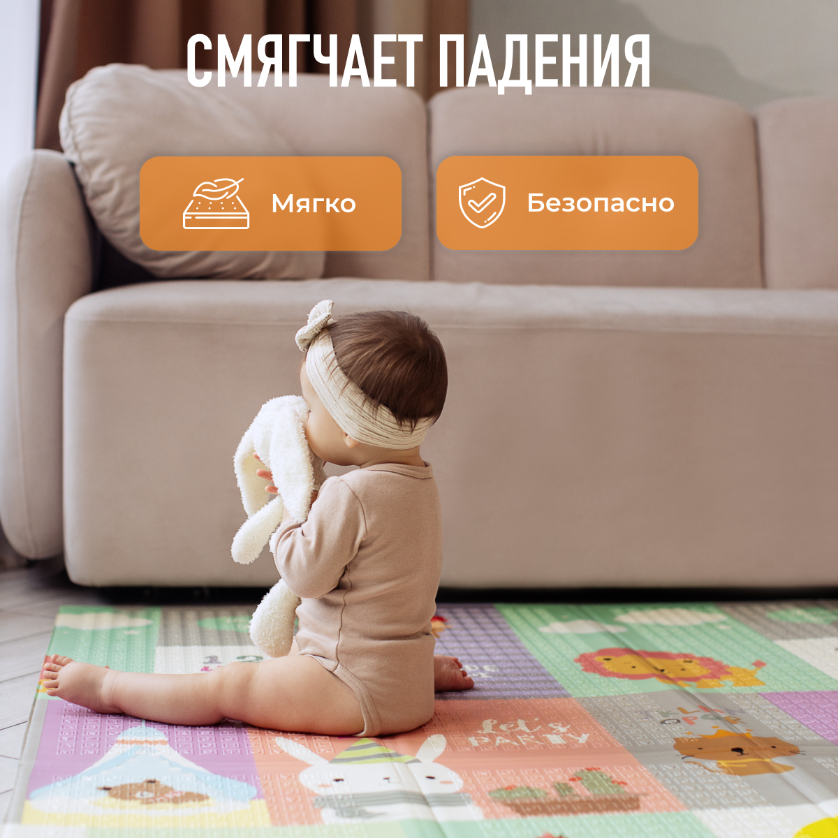 Купить Детский коврик для ползания складной двухсторонний игровой термоковрик Mamagoods 180х200 Горы и зверята