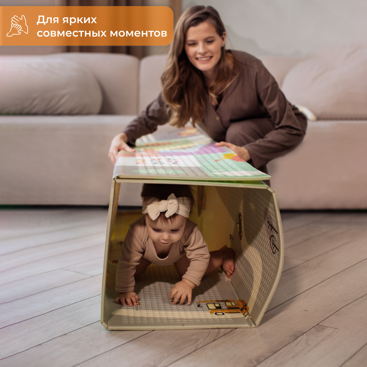 Детский коврик для ползания складной двухсторонний игровой термоковрик Mamagoods 180*200 см Дороги и цирк