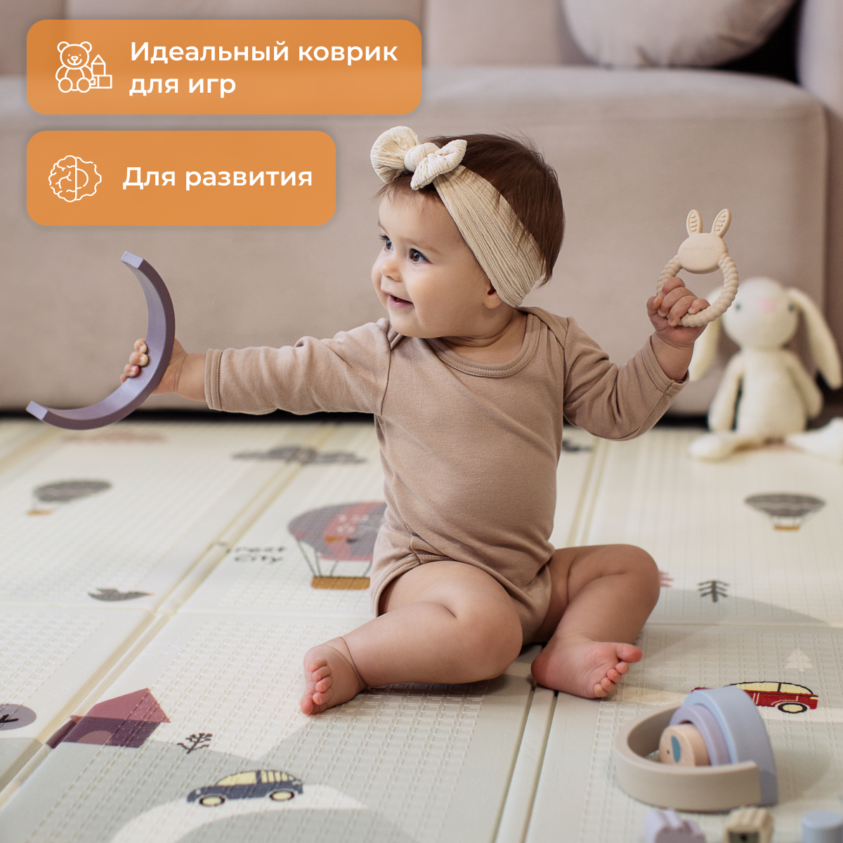 Развивающий коврик детский Mamagoods для ползания складной игровой 180х200 см Космическая Одиссея и Карта Города