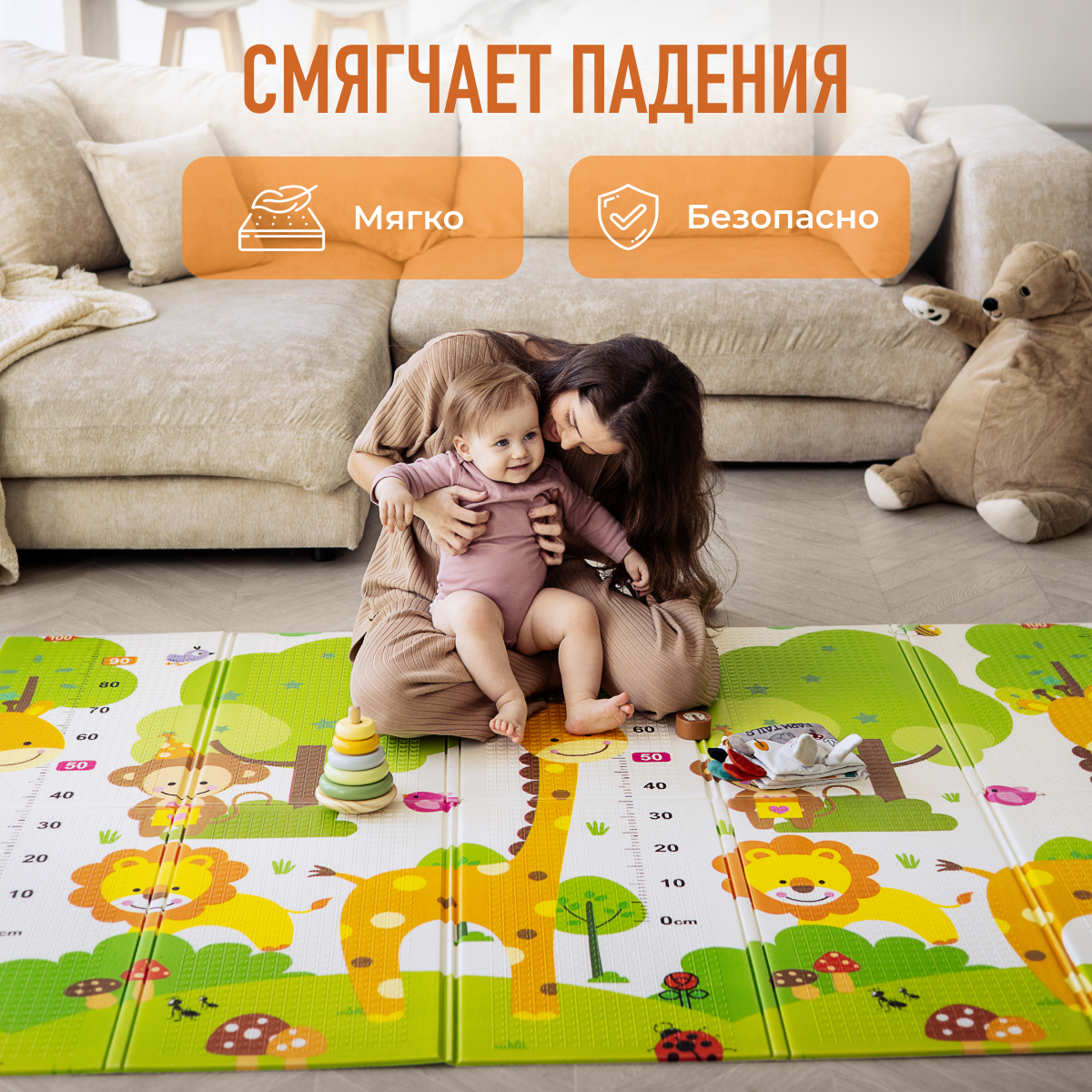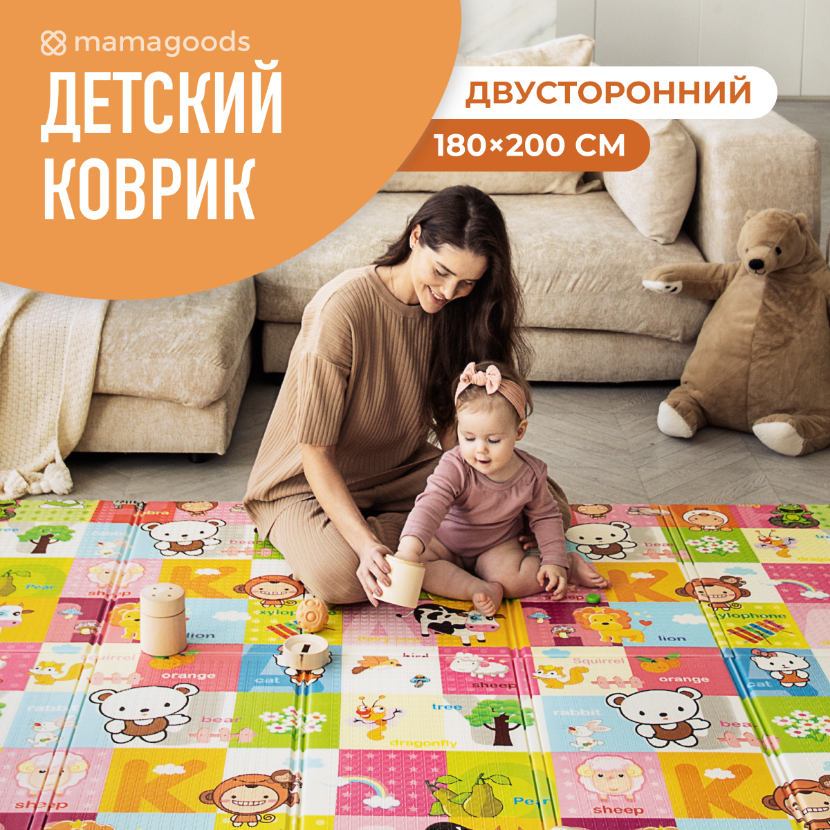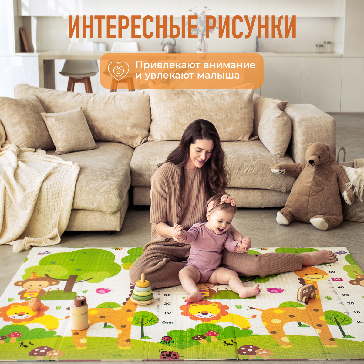 Купить Детский коврик для ползания складной двухсторонний игровой термоковрик Mamagoods 180 х 200 Жирафы и Зверята