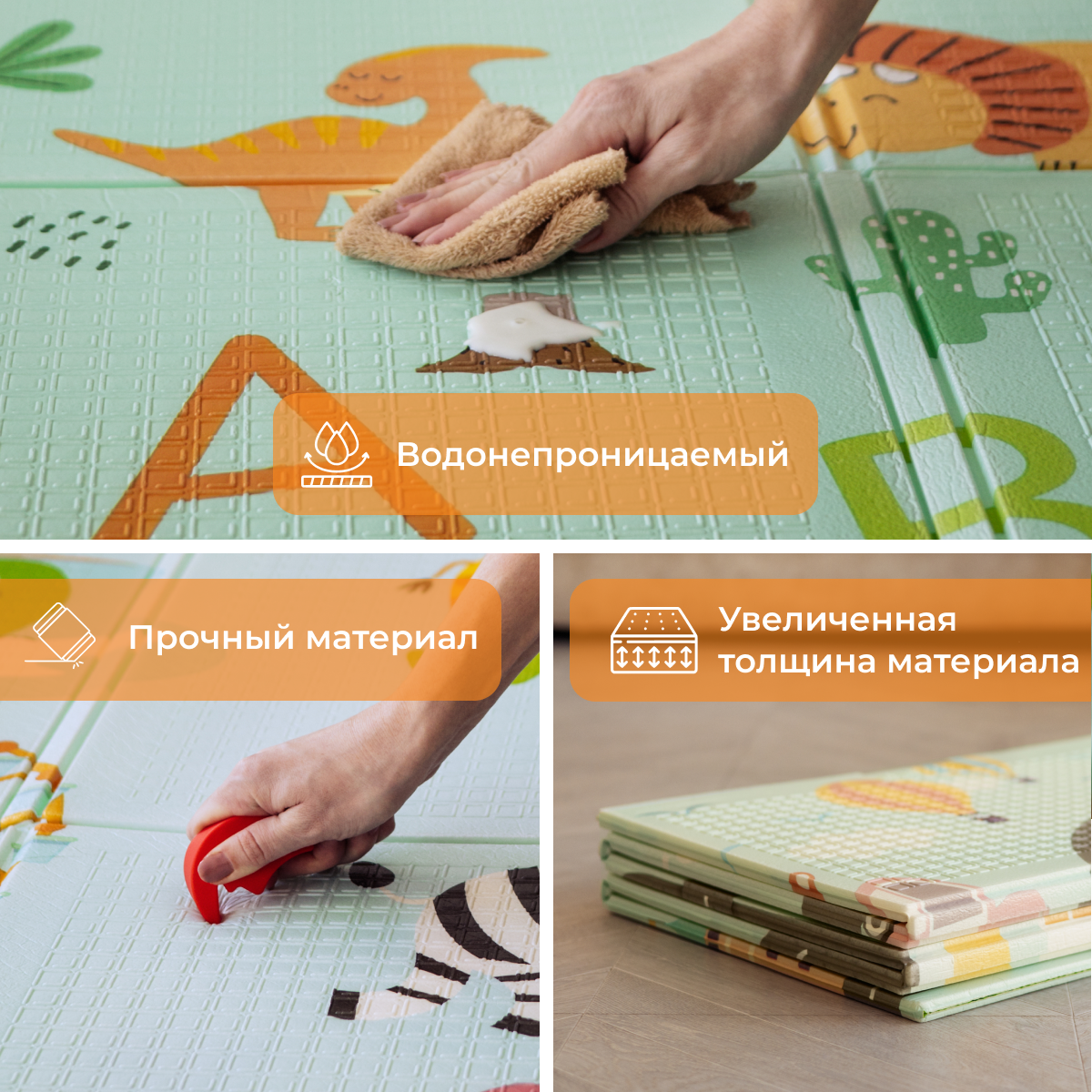 Купить Детский коврик для ползания складной двухсторонний игровой термоковрик Mamagoods 180х200 Динозавры и животные