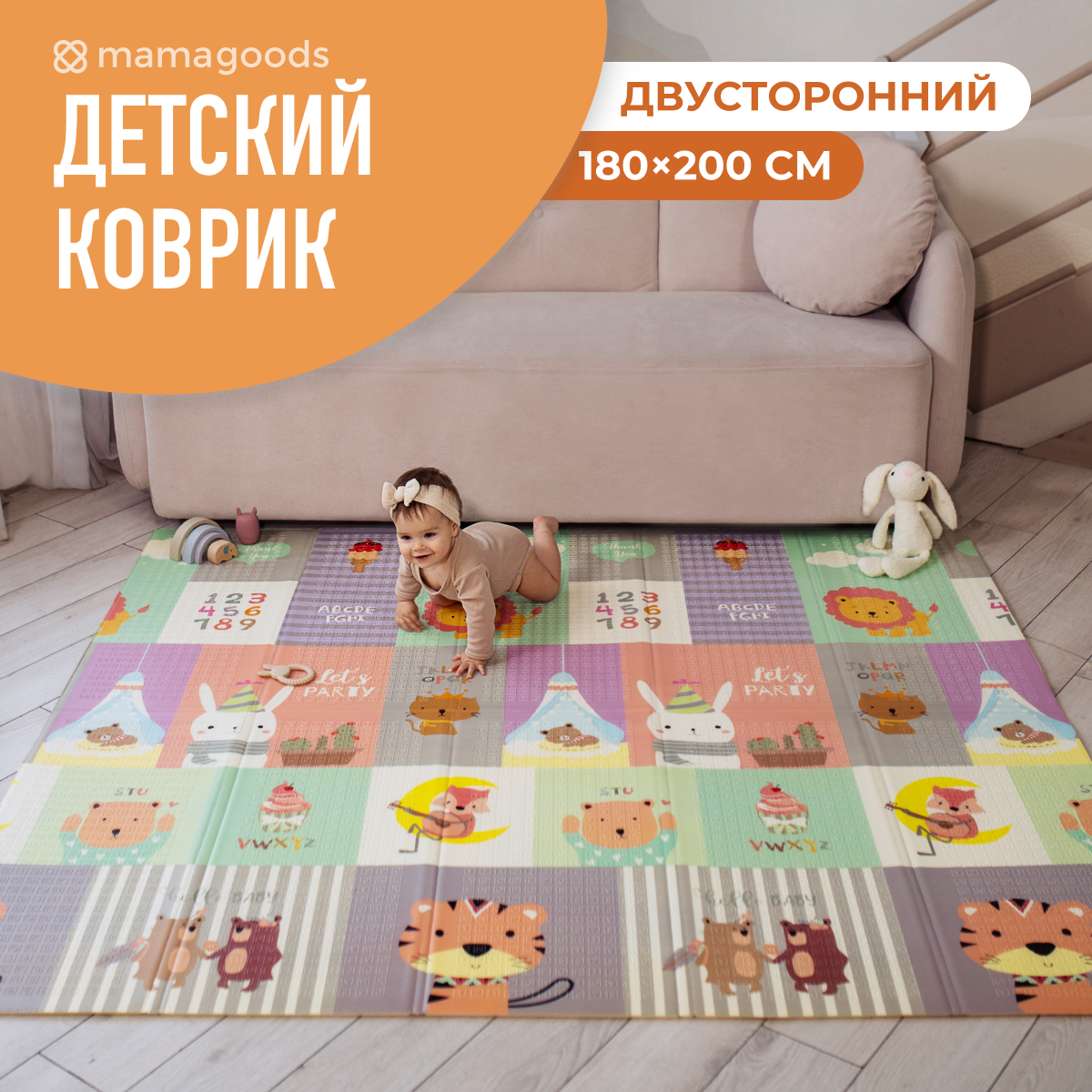 Детский коврик для ползания складной двухсторонний игровой термоковрик Mamagoods 180 х 200 Жирафы и Зверята