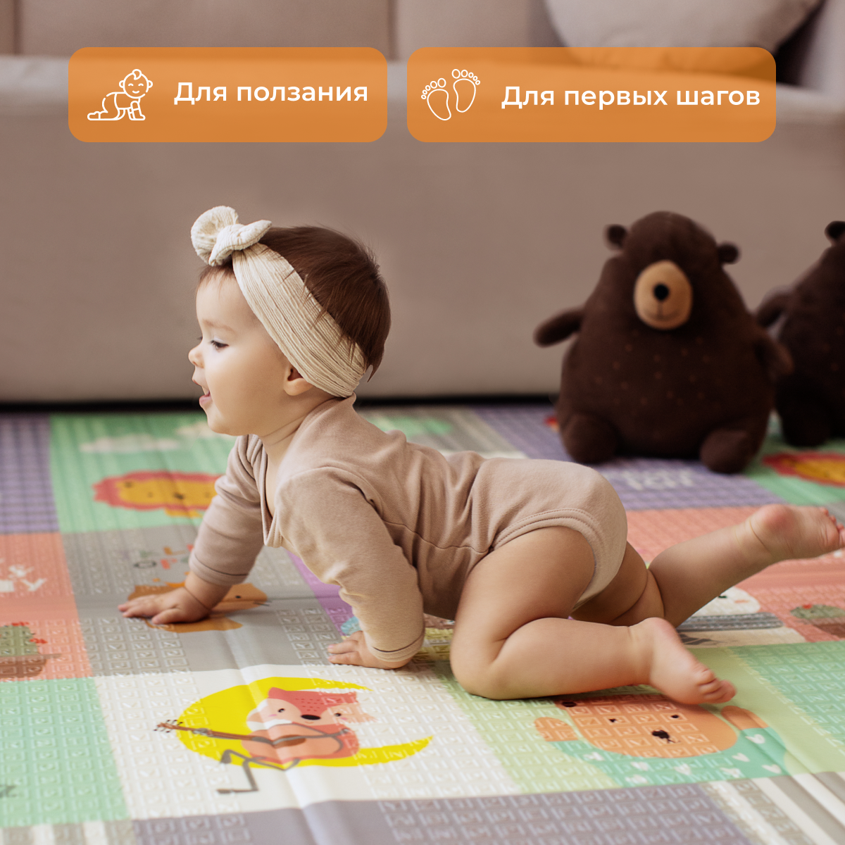 СохранитьДетский коврик для ползания складной двухсторонний игровой термоковрик Mamagoods 180х200 Медведи и зверята интересное: