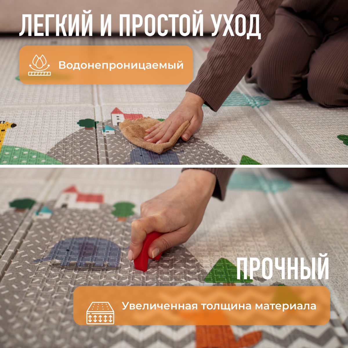 Купить Развивающий коврик детский Mamagoods для ползания складной игровой 150х200 см Холмы и Зверюшки