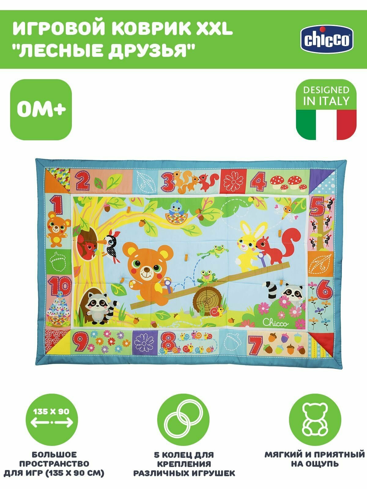 Игровой коврик Chicco мягконабивной XXL "Лесные друзья" (зеленый) интересное: