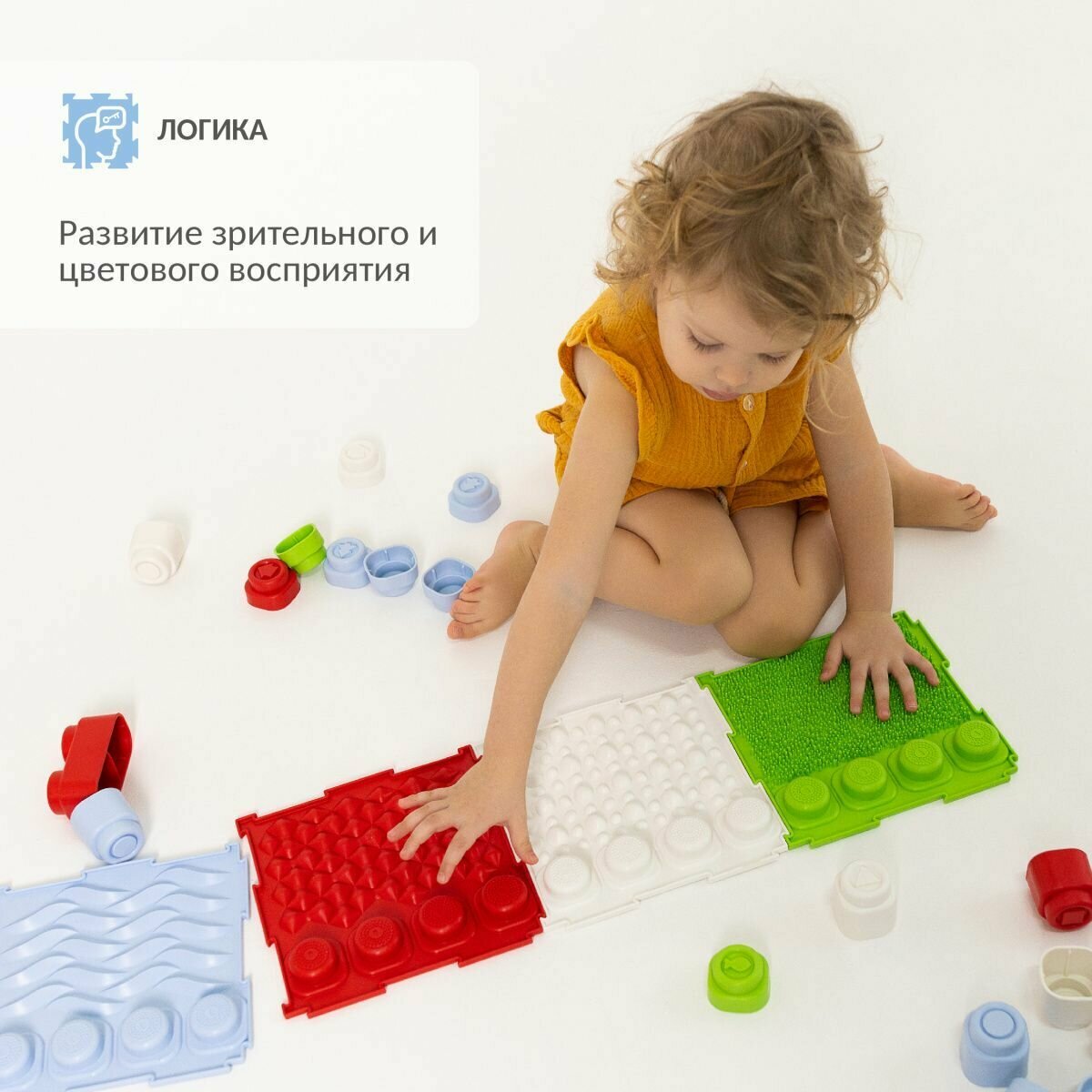 Массажный модульный коврик-пазл Ортодон "Сенсорная дорожка", 4 коврика, 12 блоков-прорезывателей, мягкий тактильный конструктор для малышей интересное: