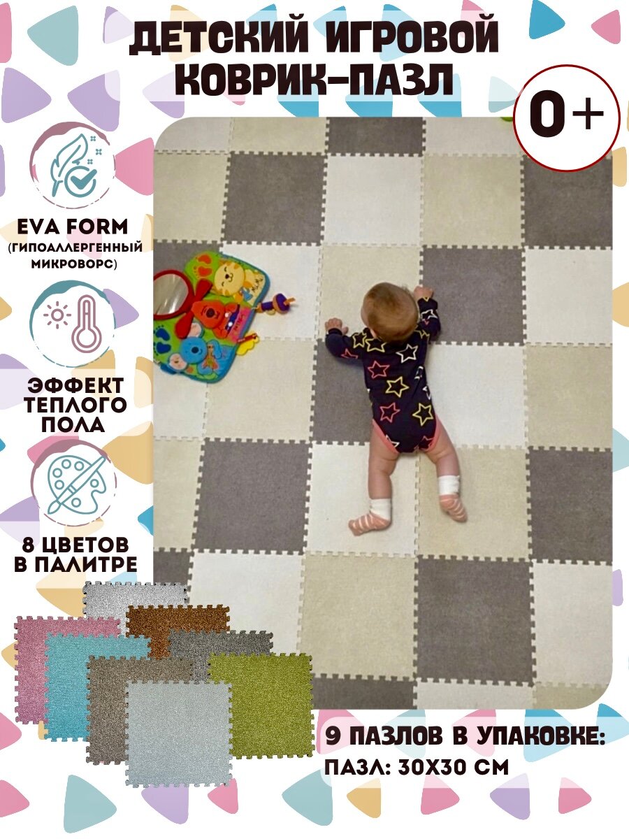 Купить Коврик детский , развивающий, для ползания, складной, пазл молочный, коврик напольный, коврик игровой