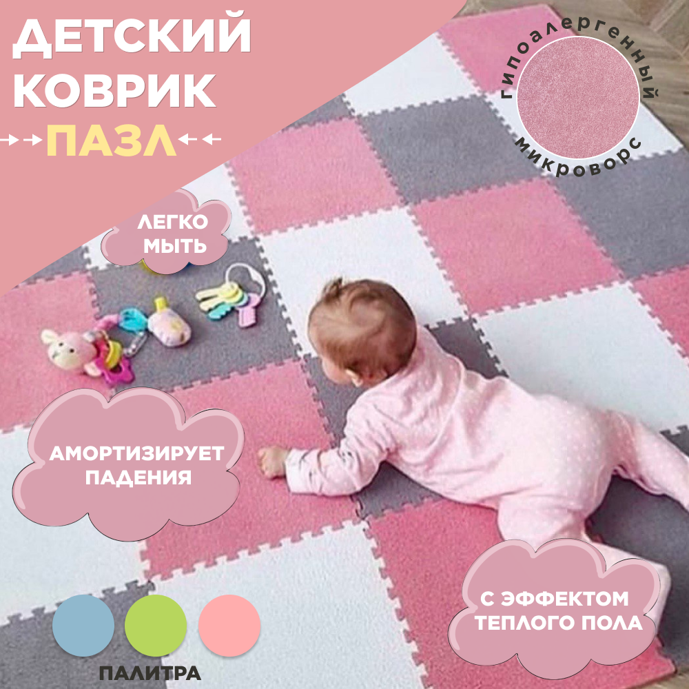 Купить Коврик детский , развивающий, для ползания, складной, пазл розовый, коврик напольный, коврик игровой