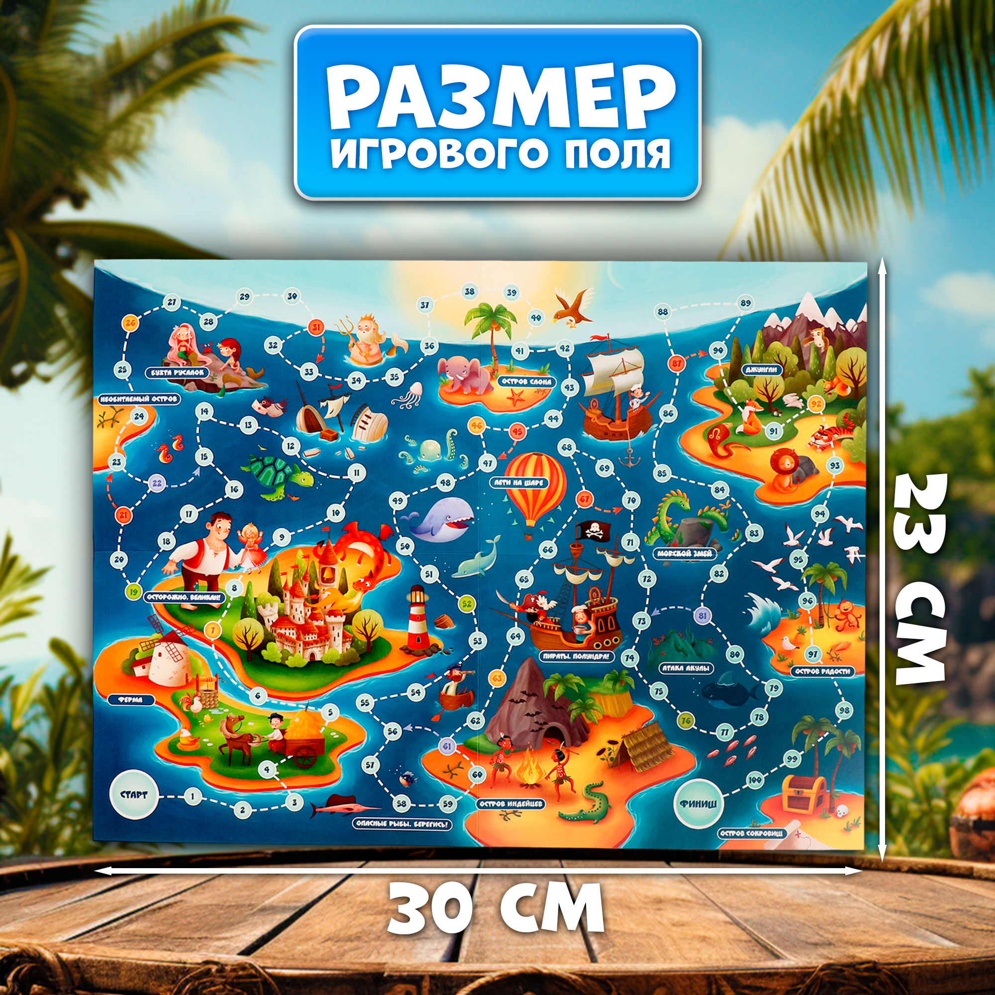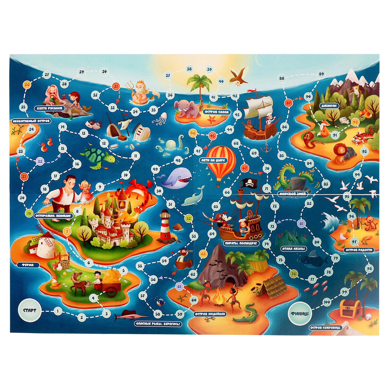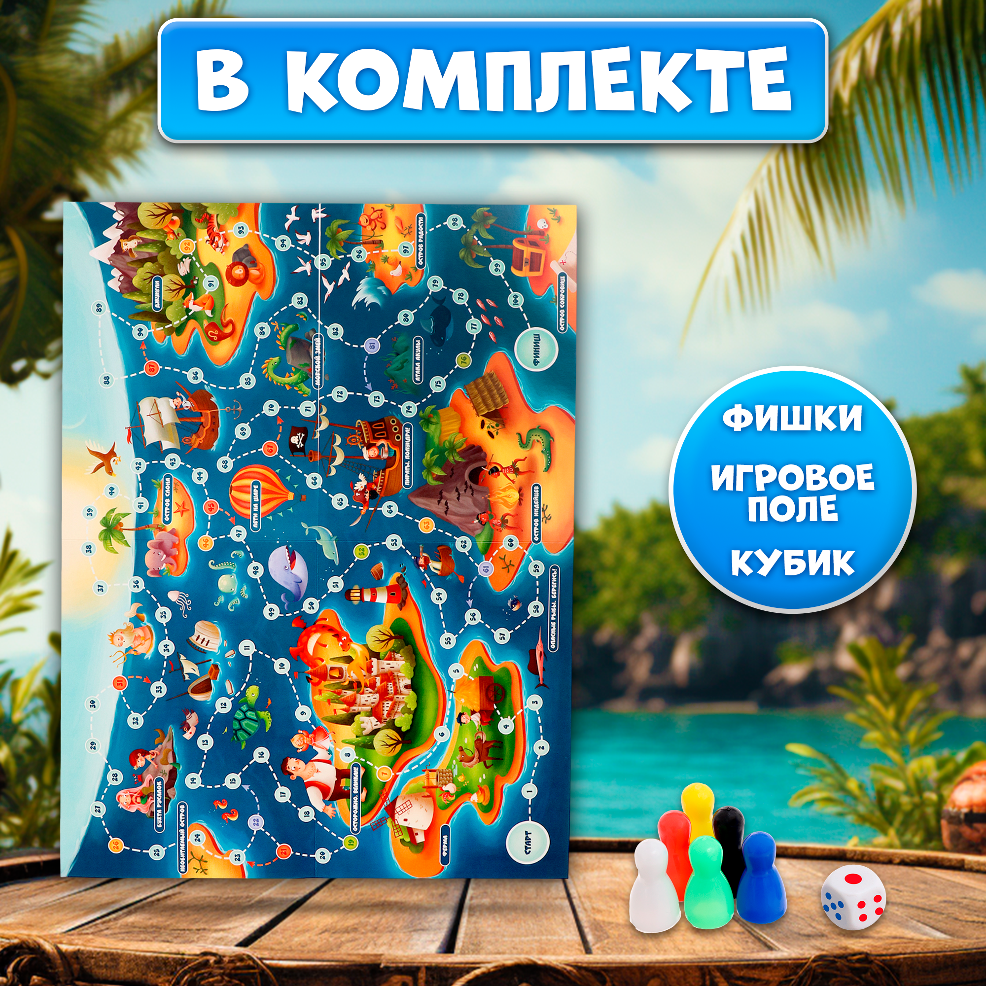 Настольная игра-ходилка "Карта сокровищ", детская бродилка, игра-путешествие с кубиком и фишками