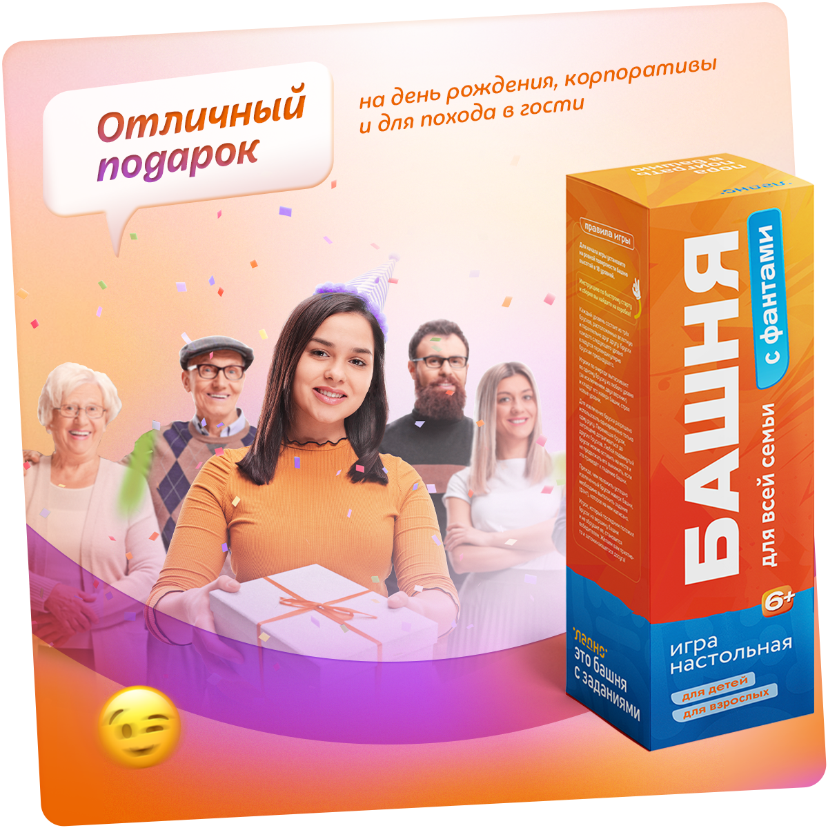 | Тип игры | для вечеринки / логическая / подвижная / развивающая / семейная / фанты |