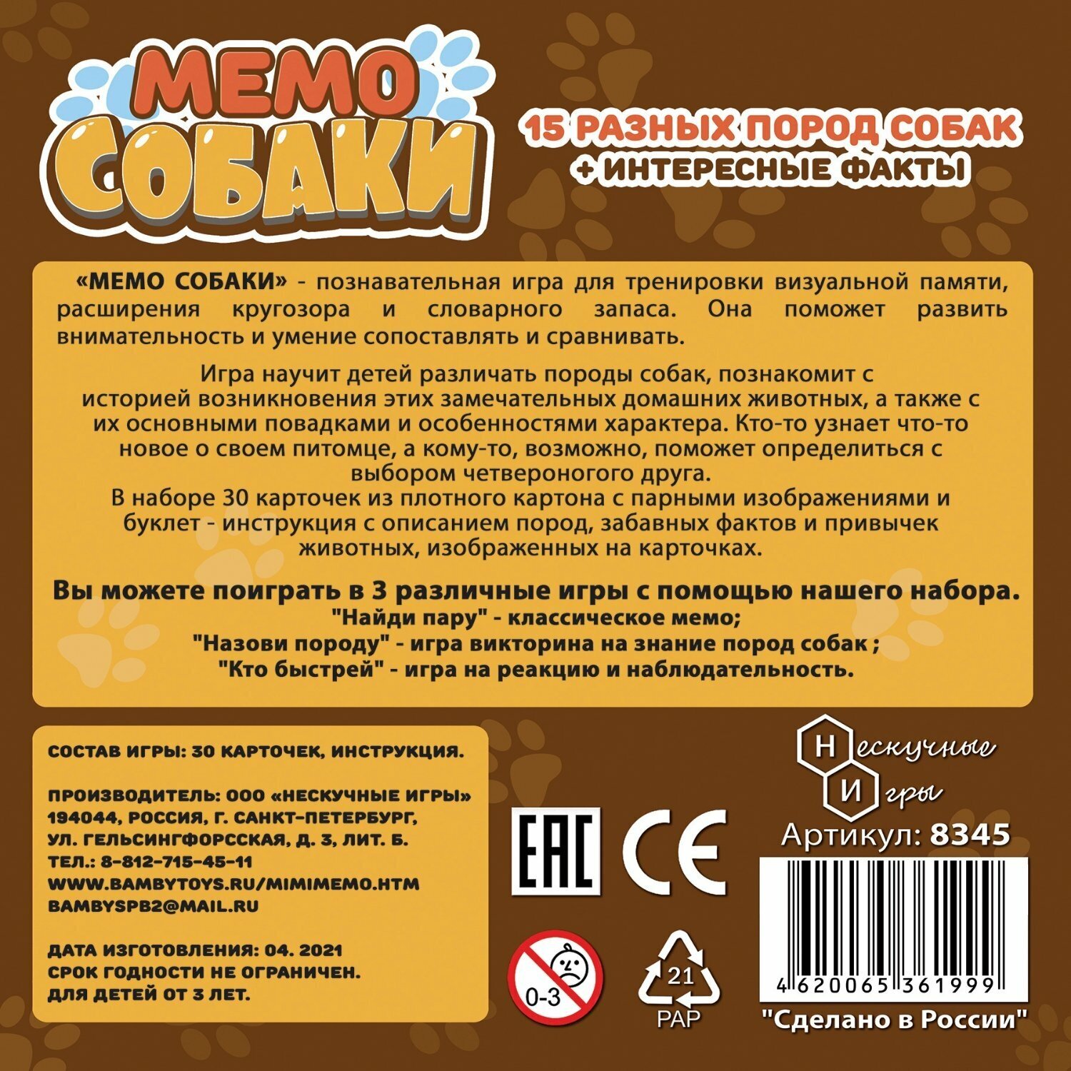 | Тип игры | для вечеринки / карточная / мемо / развивающая / семейная |
