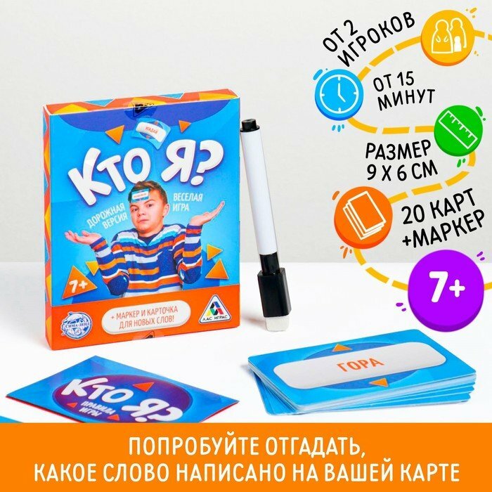 Настольная игра "Кто я?" дорожная версия, 20 карт, 7+, Лас Играс