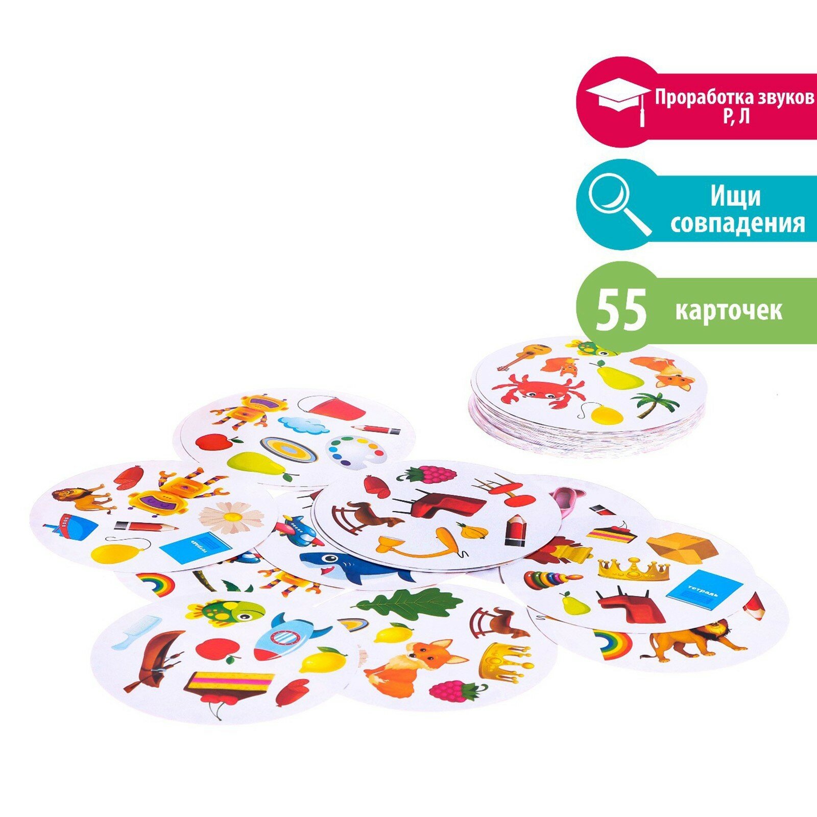 Логопедическая настольная игра IQ Zabiaka "Рыба лыба", аналог игры "Дуббль", 55 карточек, отработка звуков, для детей и малышей
