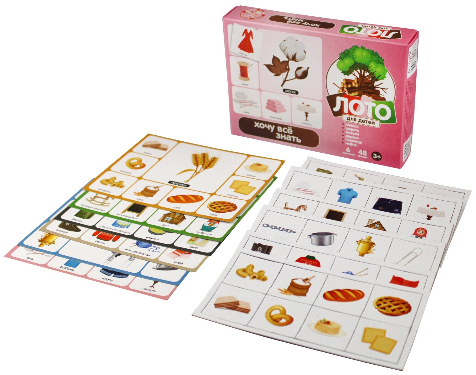 Детское лото с картинками "Хочу все знать" малое, настольная развивающая игра для детей, 48 фишек + 6 тематических карточек