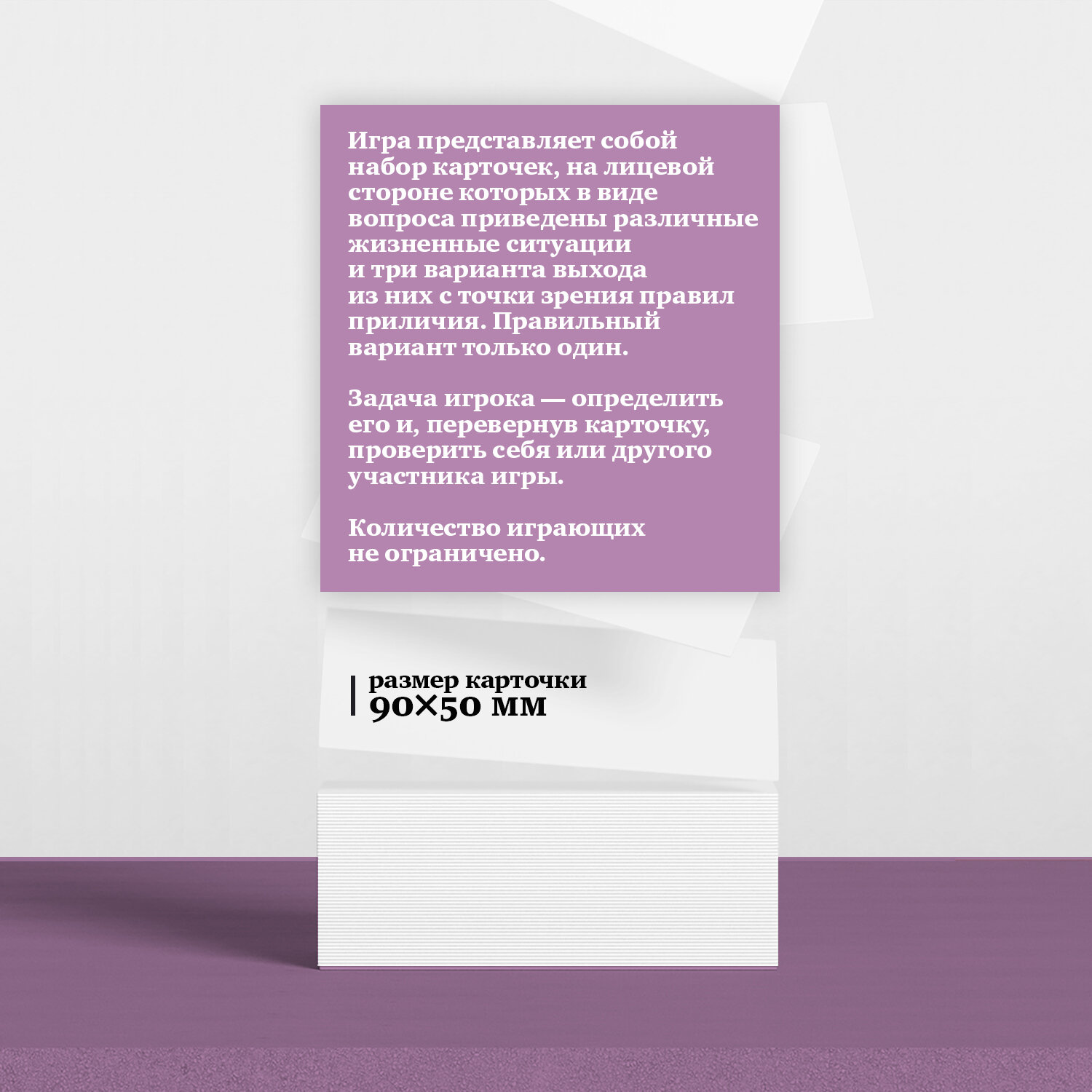 | Комплектация | 120 черно-белых двусторонних карточек размером 90 х 50 мм |