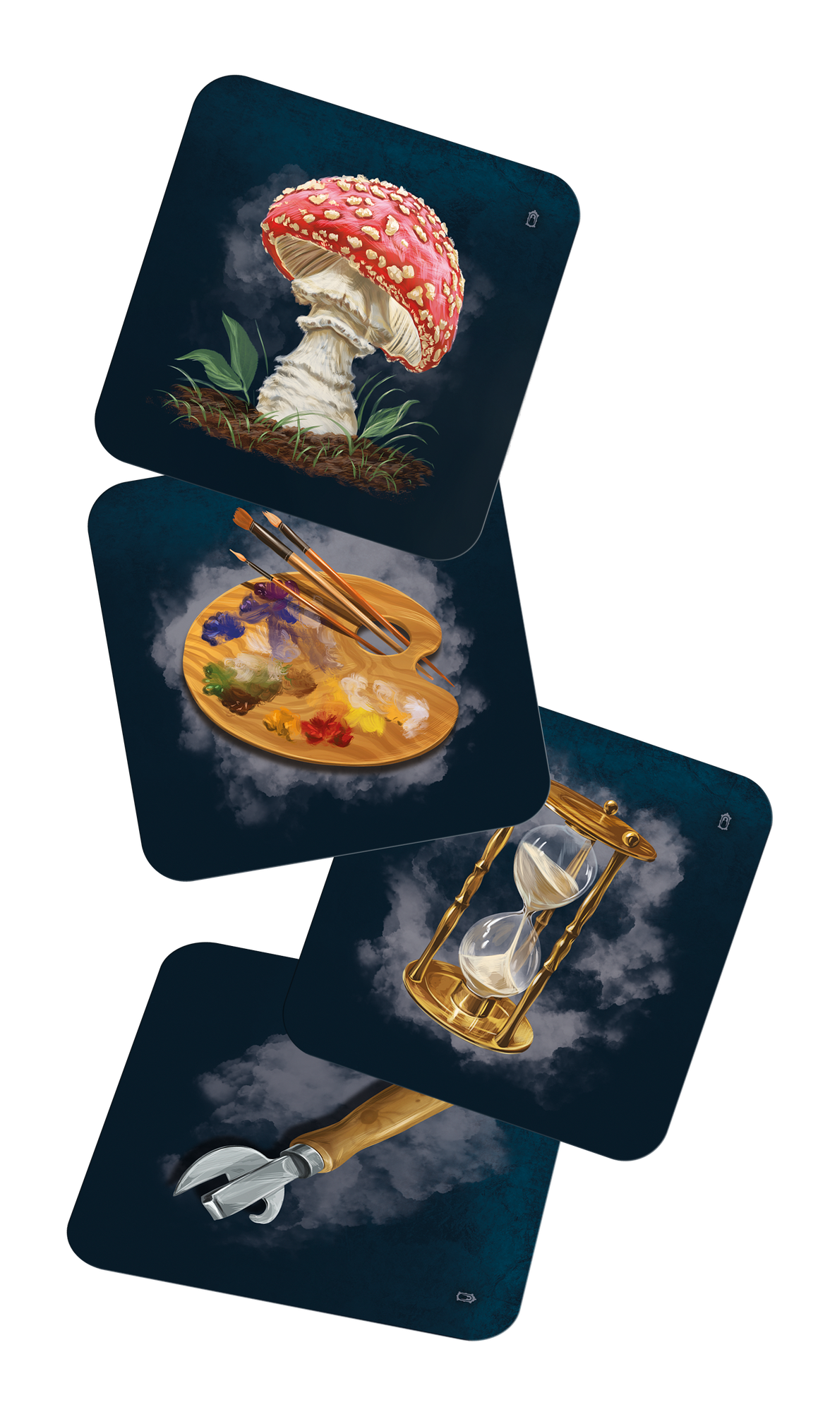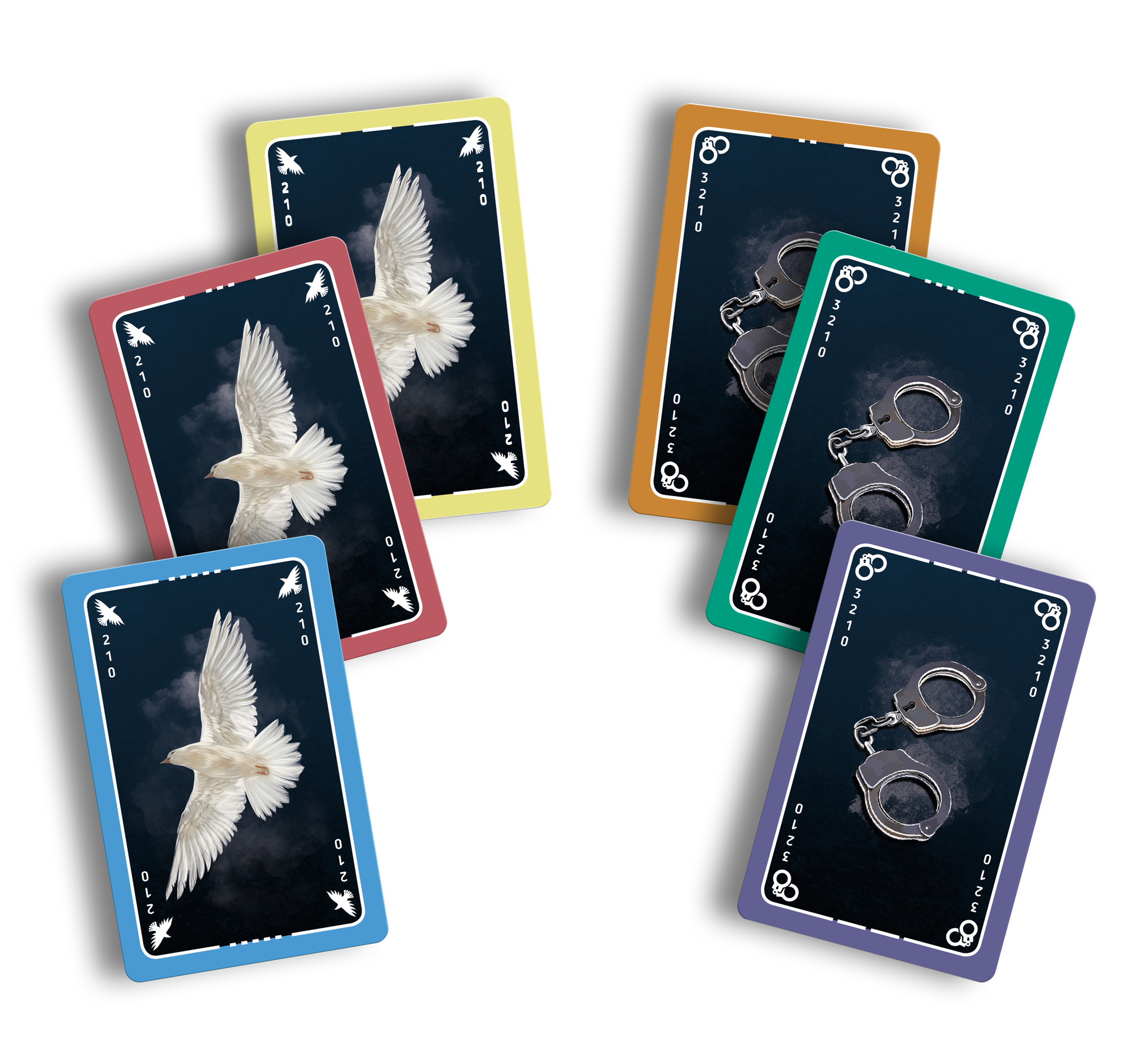 | Комплектация | 150 карт улик, 14 карт тайных ролей, 12 карт персонажей (двусторонние), 3 жетона категорий, 1 жетон рации, 1 жетон почтового ящика, карта-памятка, правила игры |