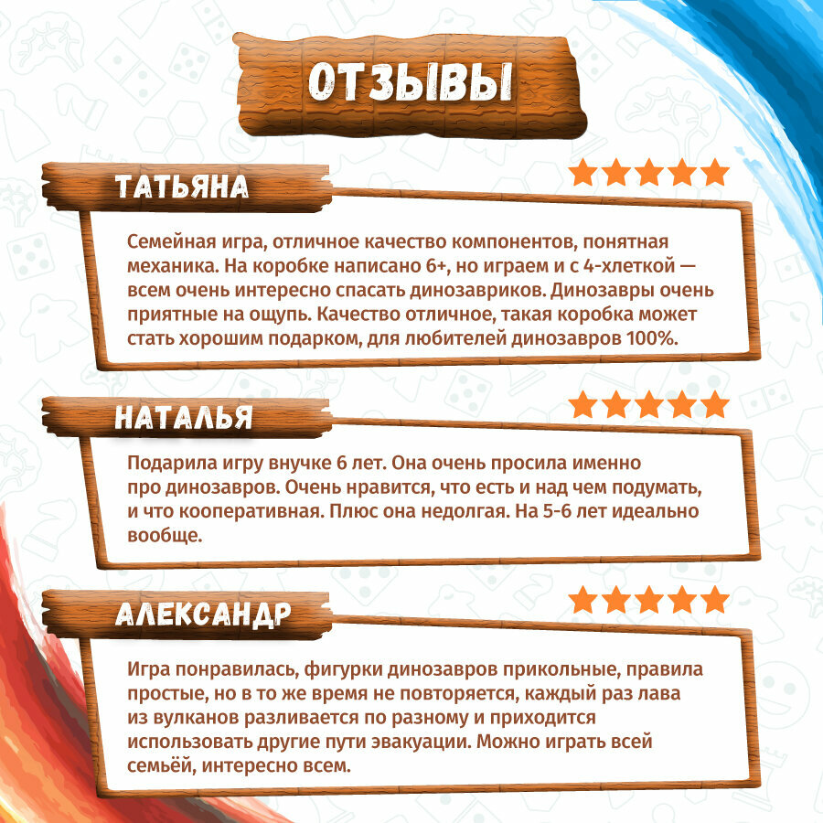 Ниже Вы можете прочитать отзывы на Настольная игра Спасите дино, ознакомится с подробными характеристиками, посмотреть интересные обзоры и фотографии на Настольная игра Спасите дино.
