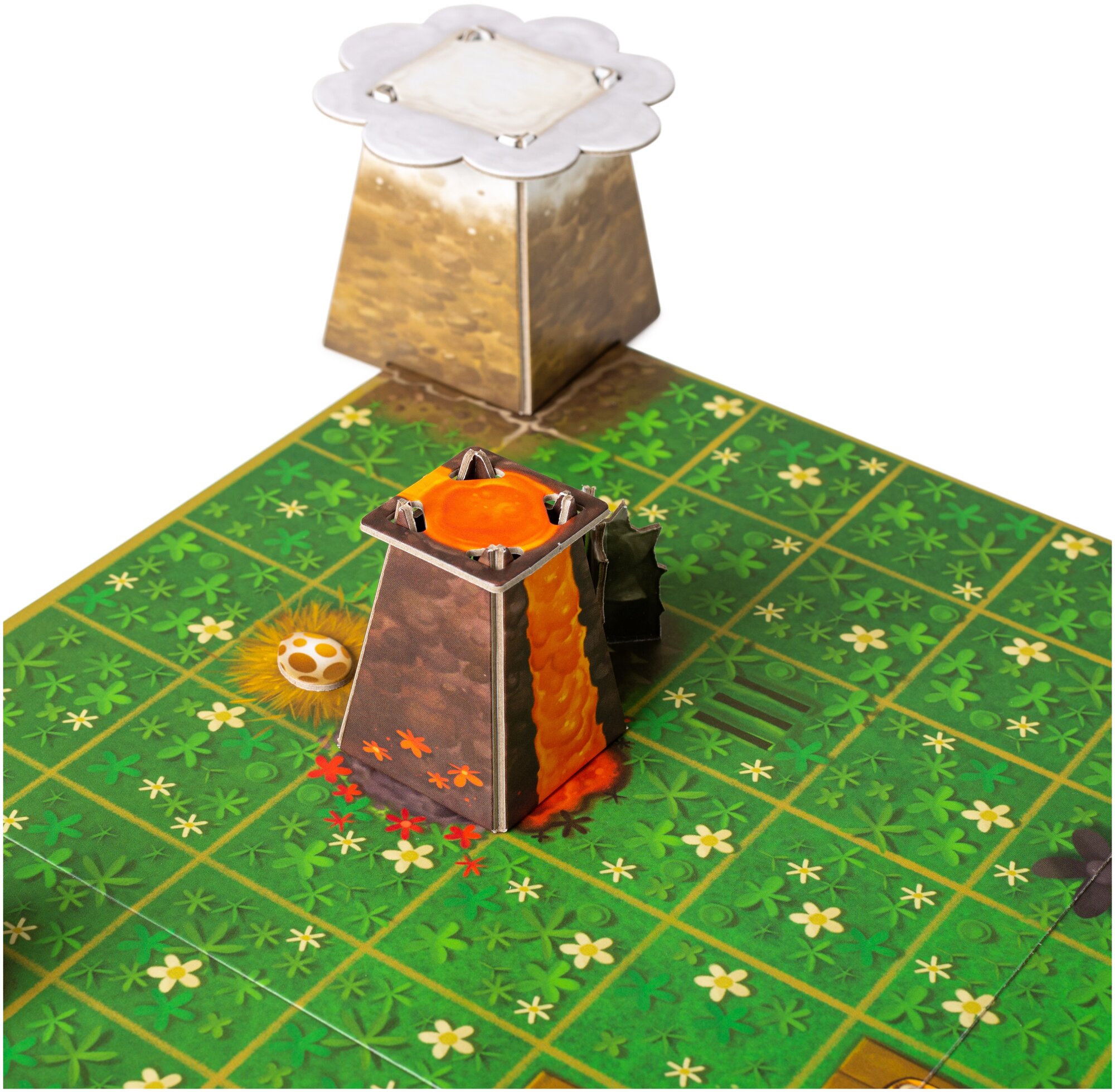 | Комплектация | 4 фигурки динозавриков, 1 игровое поле, 4 фигурки вулканов, 4 фигурки гор, 4 фигурки острых скал, 5 фигурок колючих кустов, 58 квадратов опасности, 6 яиц динозавров, 1 большой тканевый мешок, 1 книга правил |