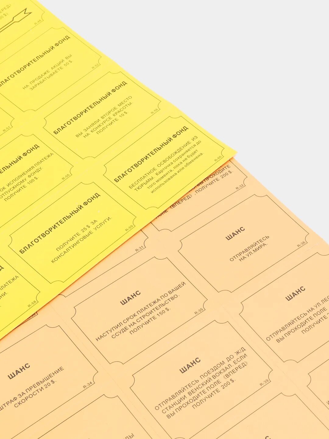 | Комплектация | игровое поле из плотного глянцевого картона размером 42 на 42 см; 10 игровых фигурок (жетонов) из легкого пластика; 28 карточек на право собственности из мягкого картона; 16 карточек "Шанс" и 16 карточек "Благотворительный фонд" из мягкого картона; 32 дома и 12 отелей из легкого пластика; денежные средства из тонкой бумаги; 2 игральных кубика 8*8 мм. |