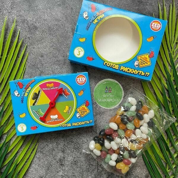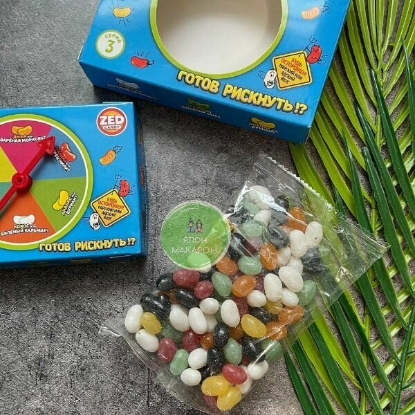 | Комплектация | Жевательные драже с разными вкусами. Может попасть вкус малины или вкус варёной морковки! Готов рискнуть? |