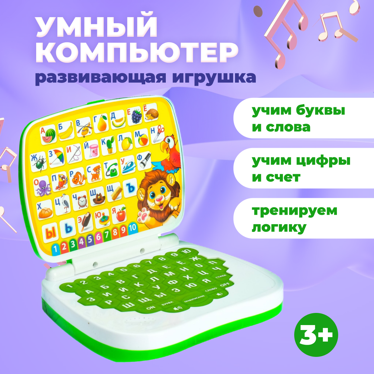 Развивающая детская игрушка «Умный обучающий компьютер: Джунгли»: учимся считать и писать, тренируем логику