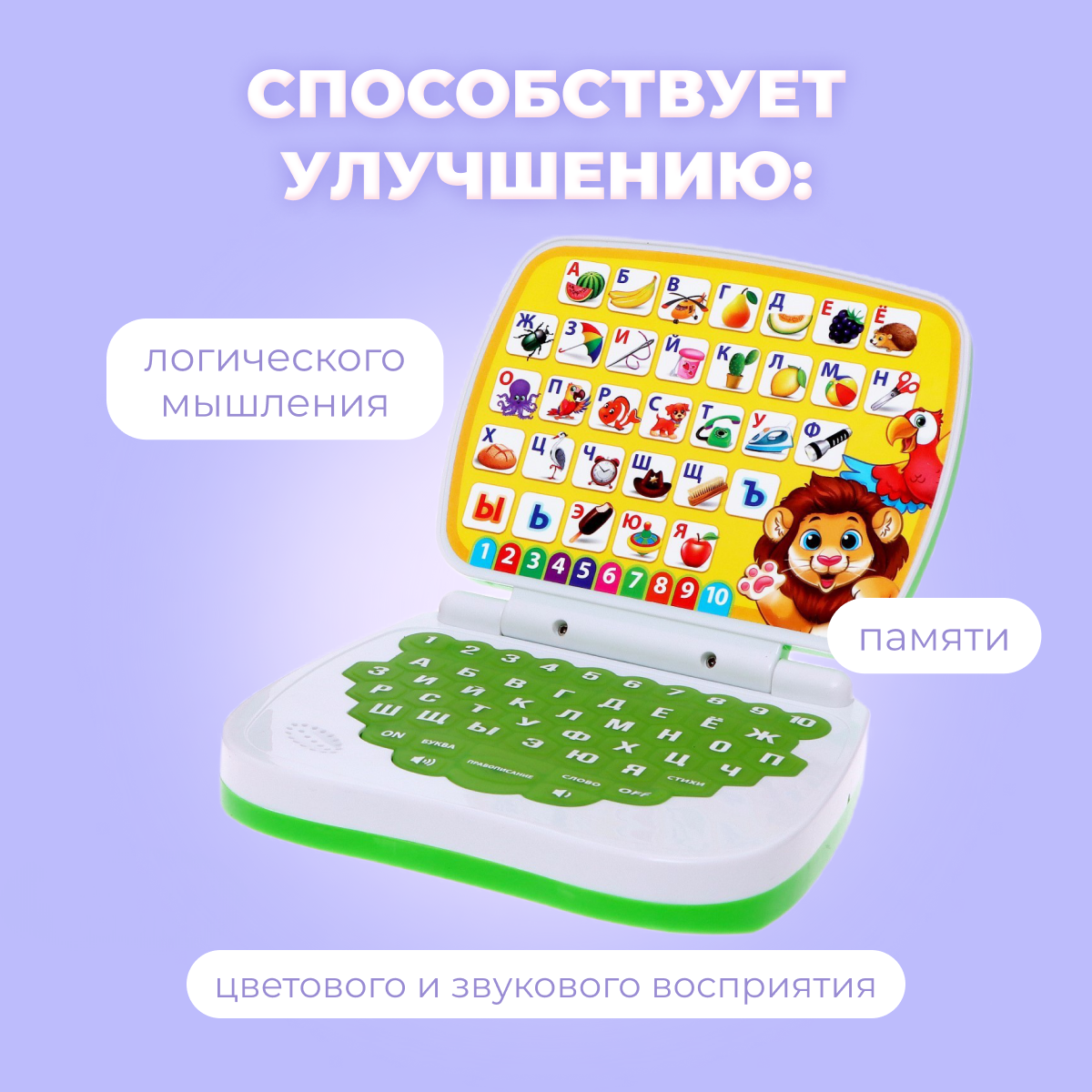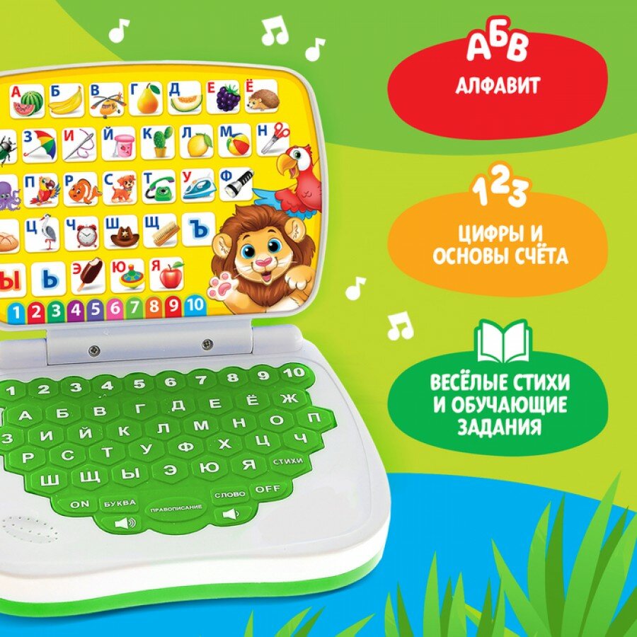 ZABIAKA Развивающая игрушка «Умный компьютер: Джунгли»: учимся считать и писать, тренируем логику интересное: