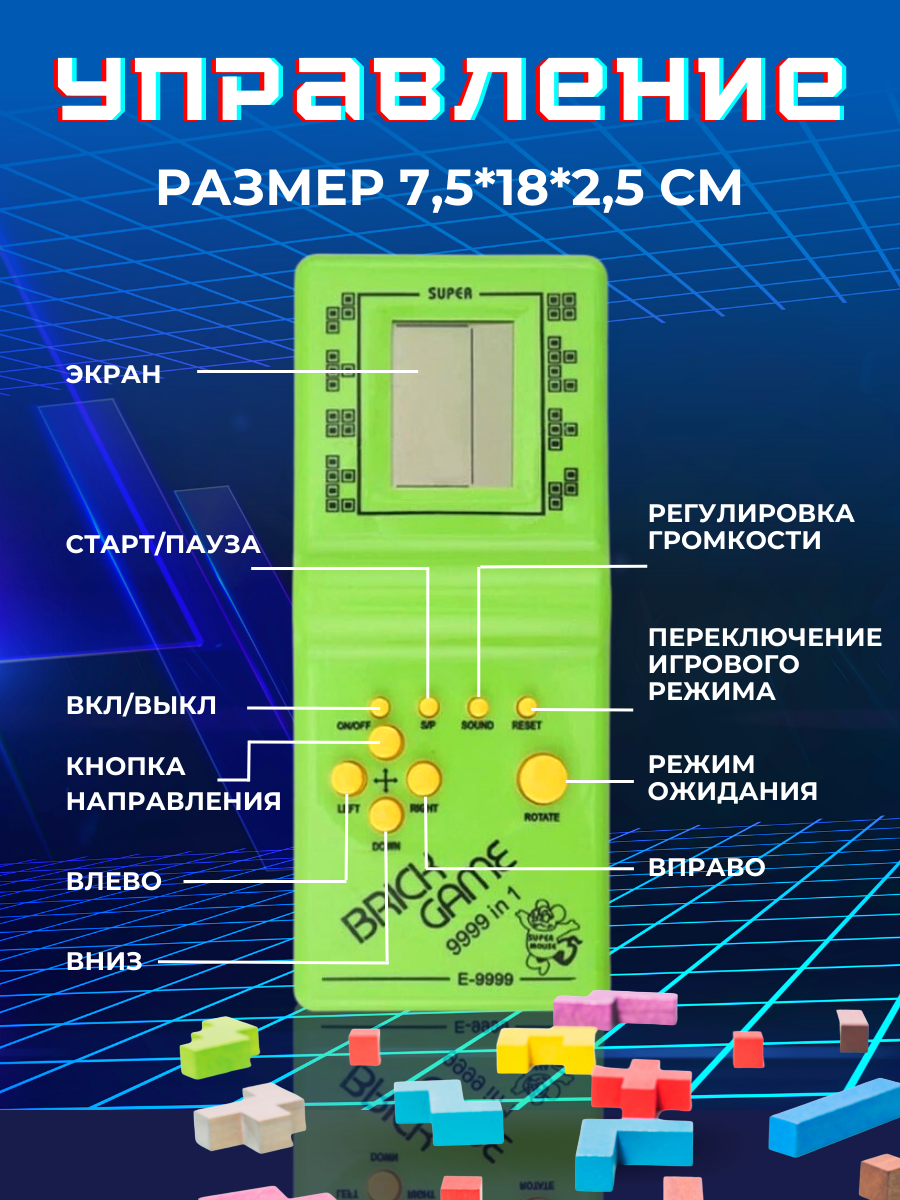 Тетрис электронный классический на батарейках для детей и взрослых зеленый интересное: