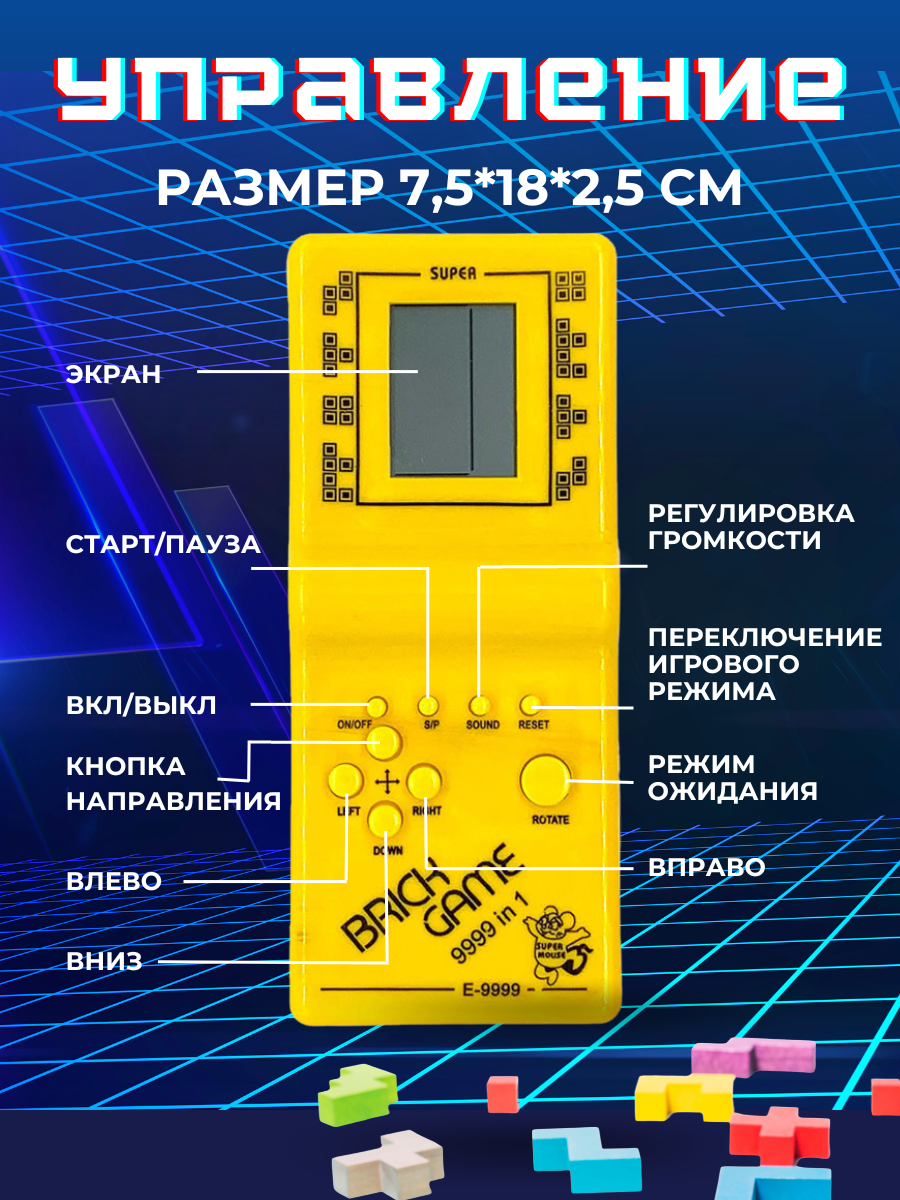 Тетрис электронный классический на батарейках для детей и взрослых желтый интересное: