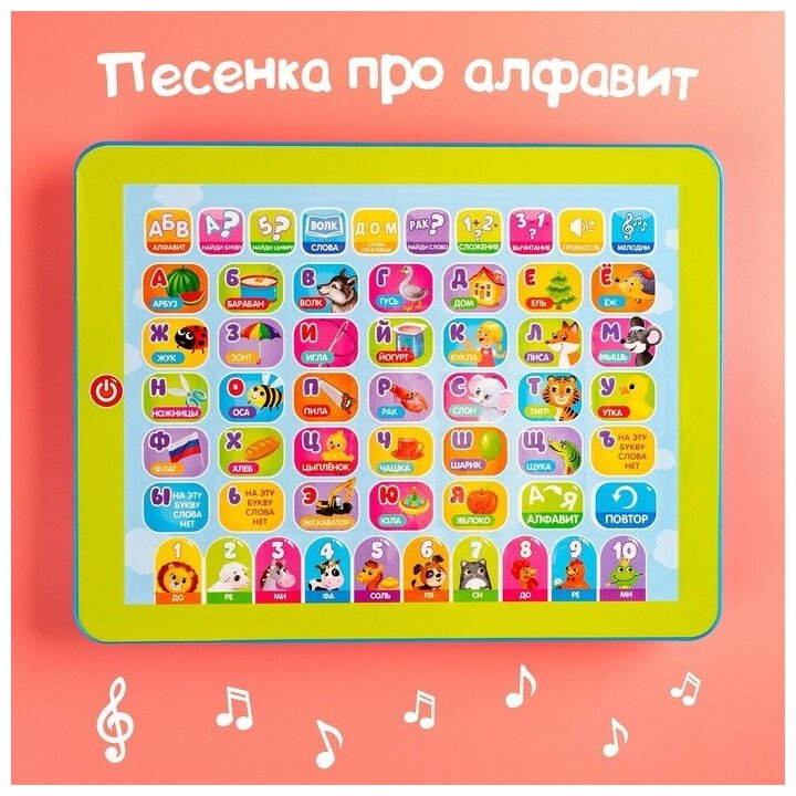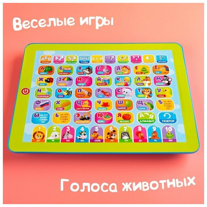 Обучающий планшет для детей "Изучаем алфавит, слова, цифры, сложение, вычитание" интересное: