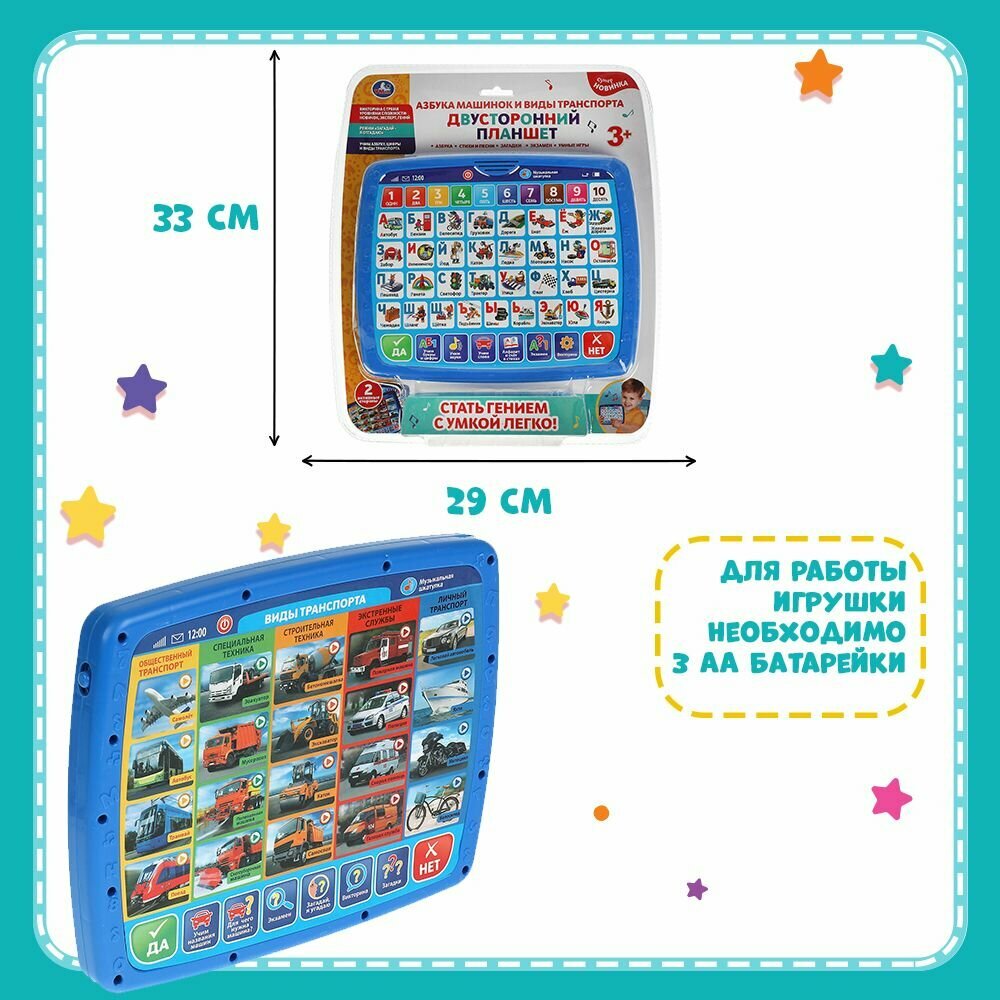 Двусторонний планшет Азбука машинок и виды транспорта УМка HT1103-R
