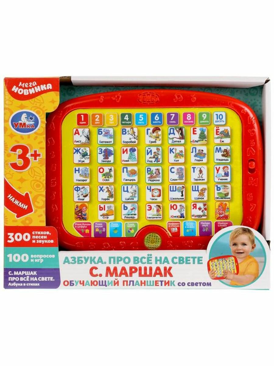 Купить Обучающий планшет со светом Маршак азбука: 300 стихов, песен, вопросов, игр Умка HT1113-R
