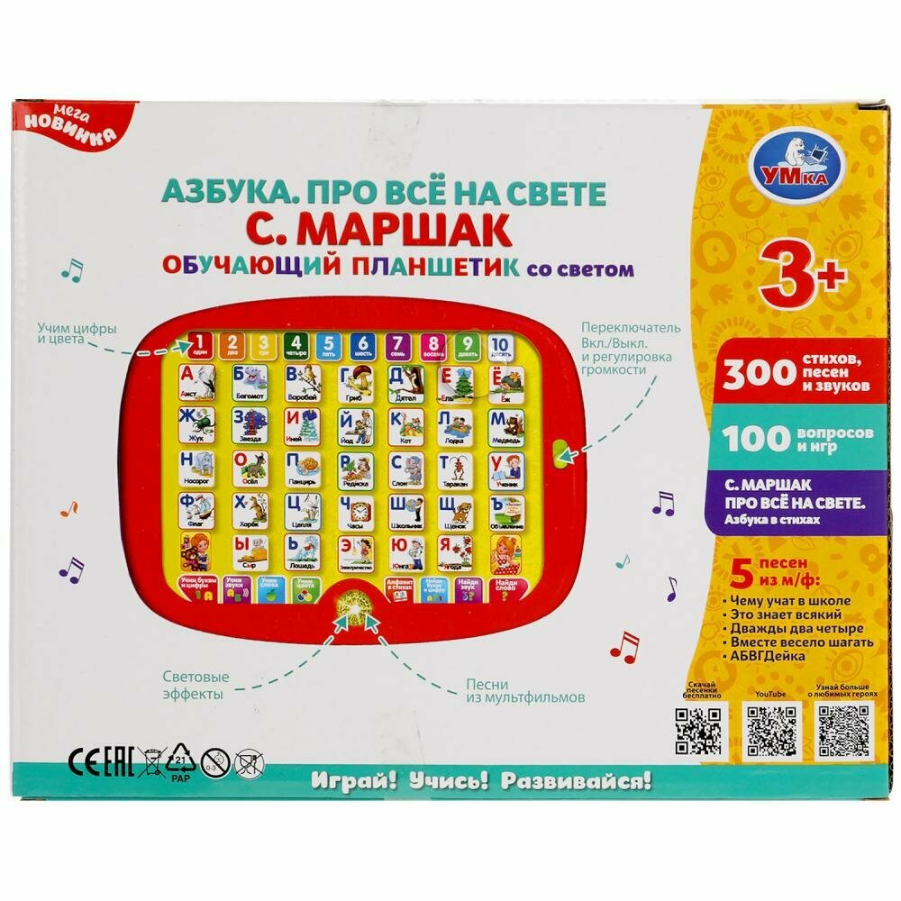 Обучающий планшет со светом Маршак азбука (300 стихов, песен, вопросов, игр)