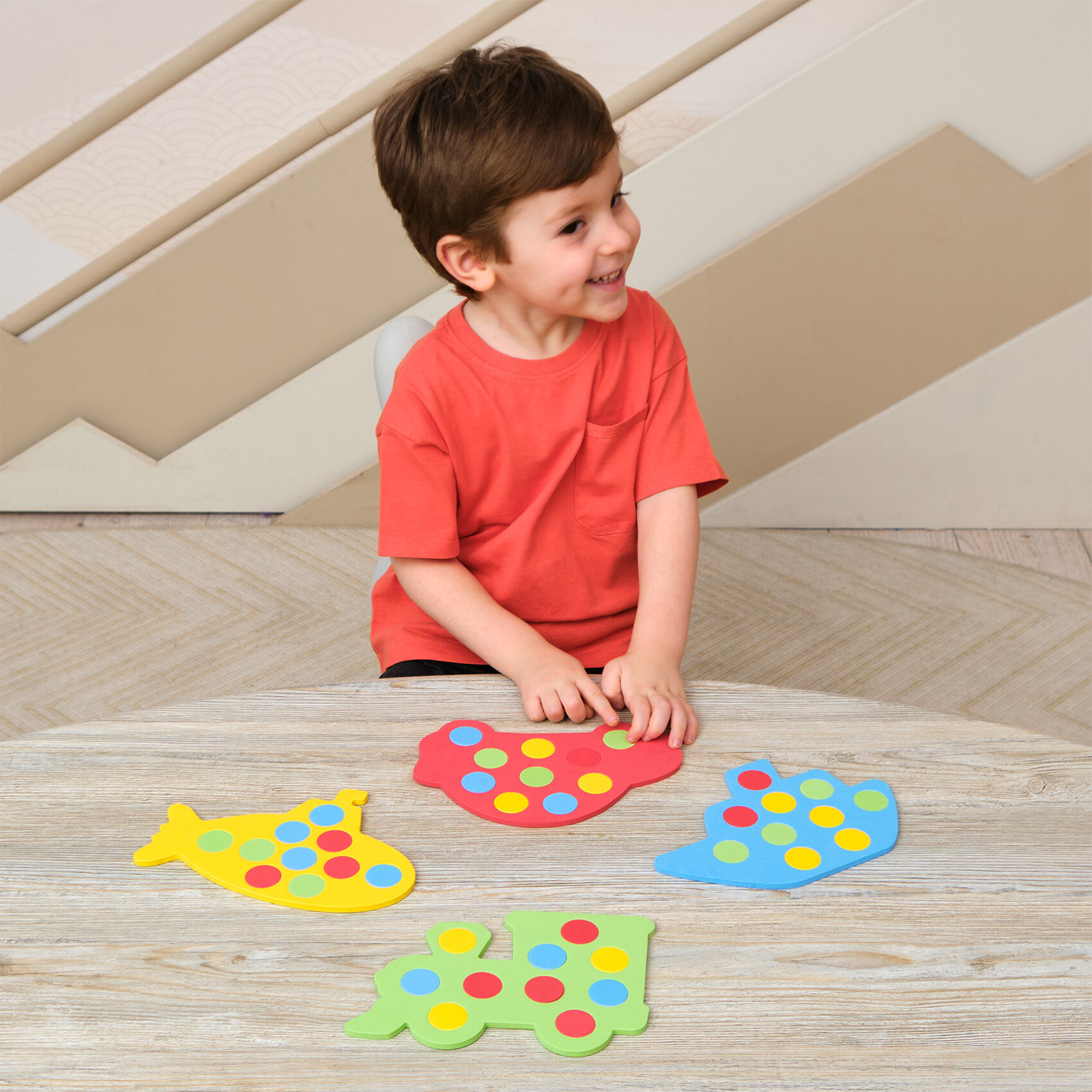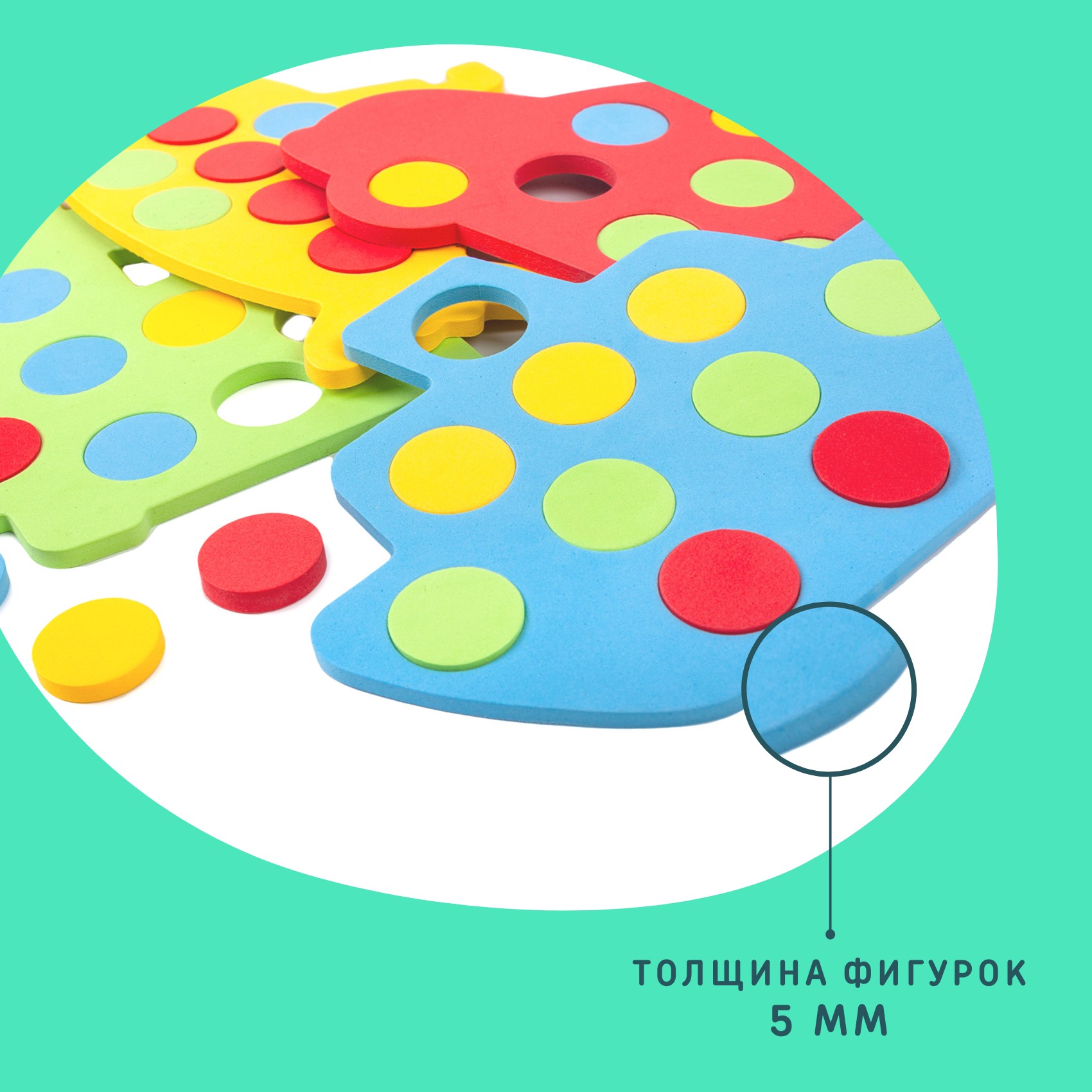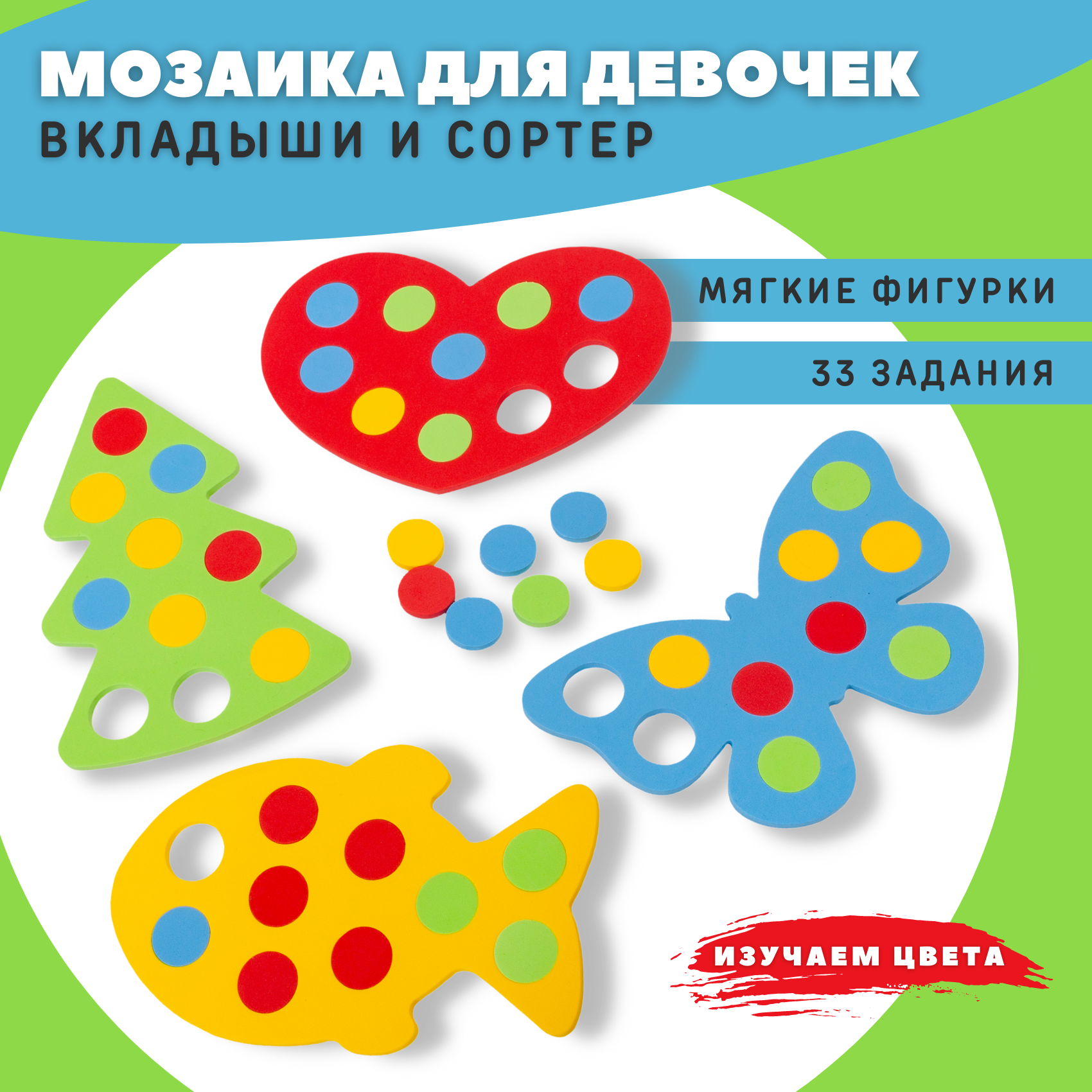 | Дополнительная информация | В комплекте: 4 разноцветных фигурки-основы, 40 круглых вкладышей, брошюра с заданиями, листовка |