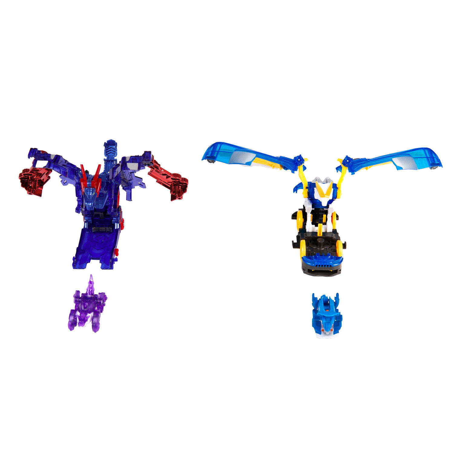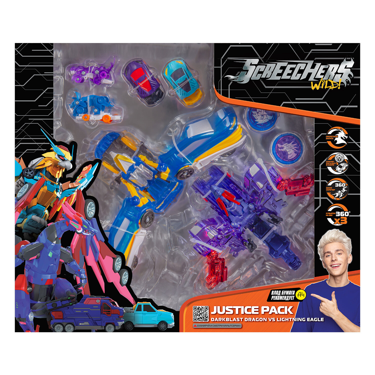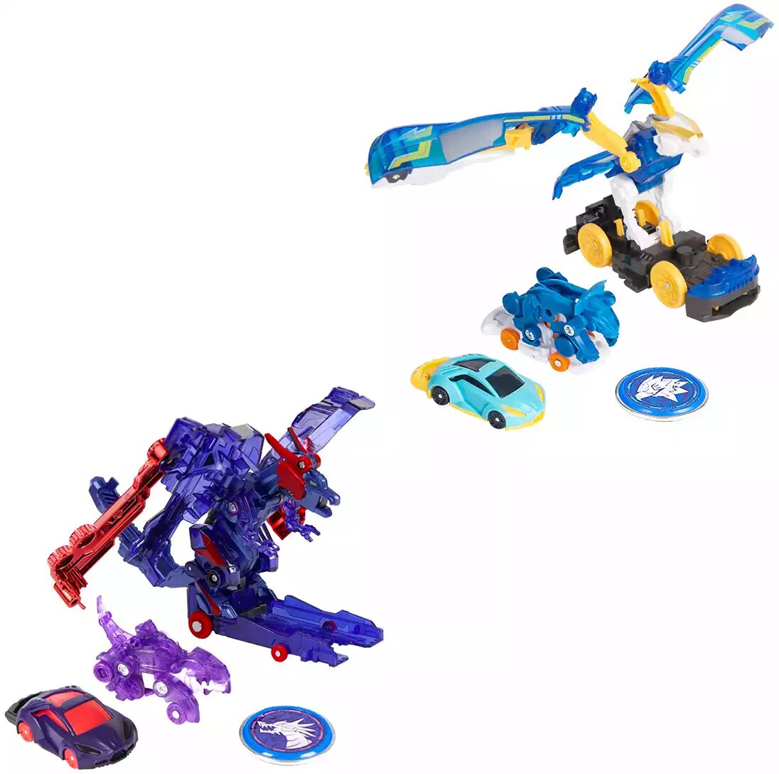 | Дополнительная информация | синхронная трансформация: одна из машинок захватывает два диска, катапультирует вторую машинку, и они одновременно трансформируются в воздухе; обратно в машинку игрушка собирается вручную; в комплекте с турбо-скричером взаимозаменяемы с машинками из 4-ой линейки |