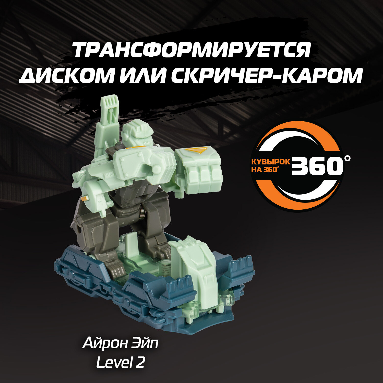 | Дополнительная информация | синхронная трансформация: одна из машинок захватывает два диска, катапультирует вторую машинку, и они одновременно трансформируются в воздухе; обратно в машинку игрушка собирается вручную; в комплекте с турбо-скричером взаимозаменяемы с машинками из 4-ой линейки |