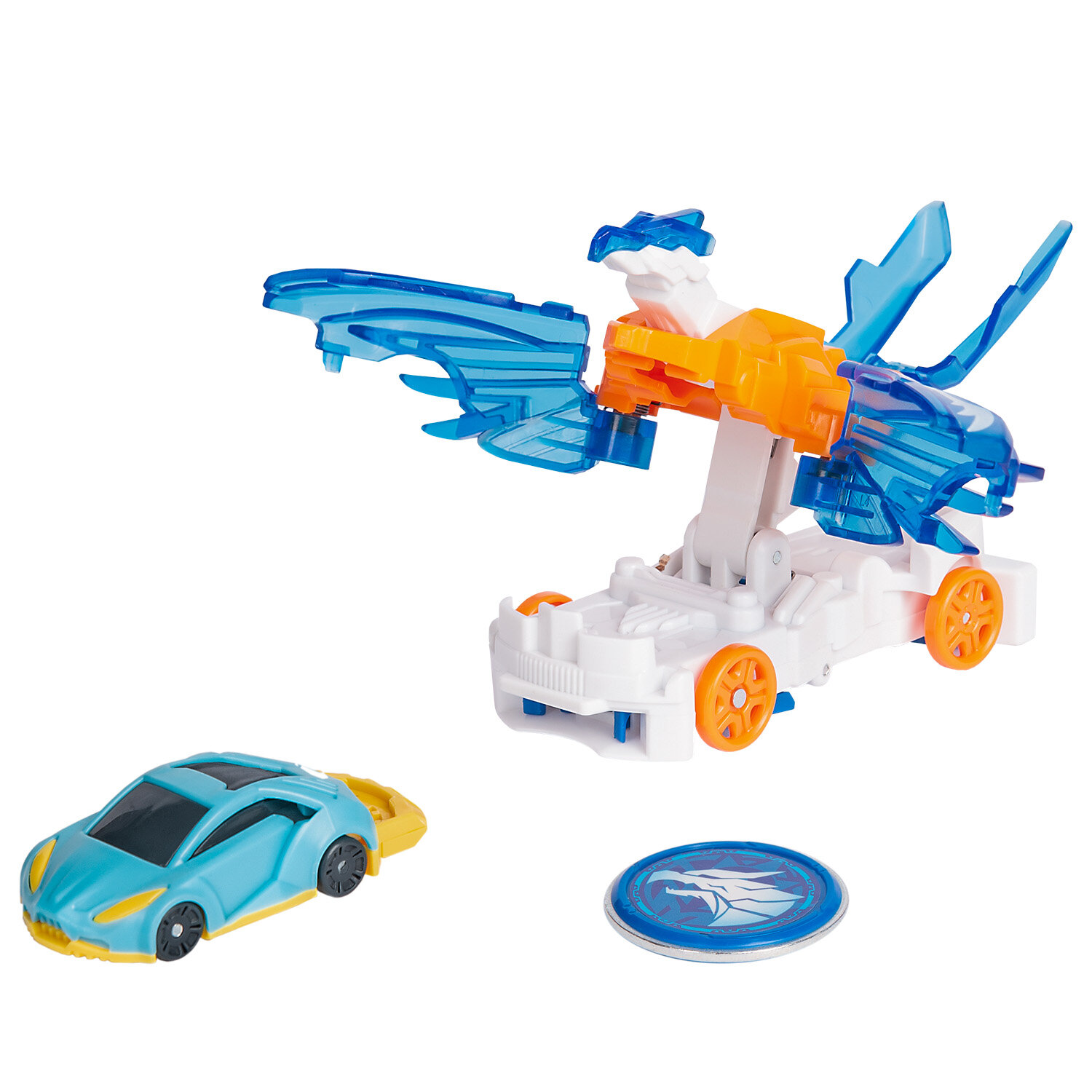 | Дополнительная информация | синхронная трансформация: одна из машинок захватывает два диска, катапультирует вторую машинку, и они одновременно трансформируются в воздухе; обратно в машинку игрушка собирается вручную; в комплекте с турбо-скричером взаимозаменяемы с машинками из 4-ой линейки |