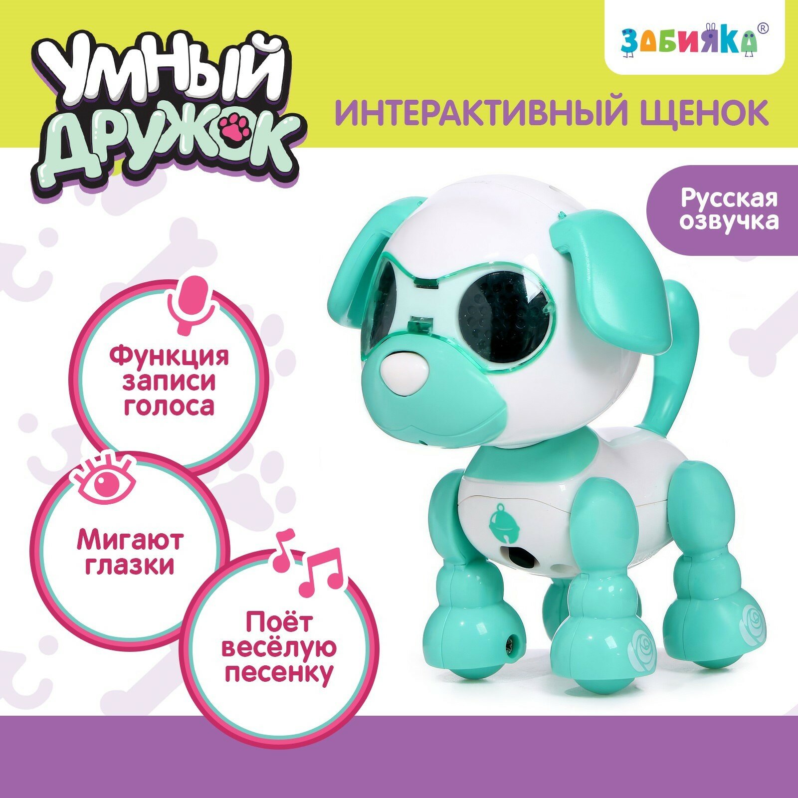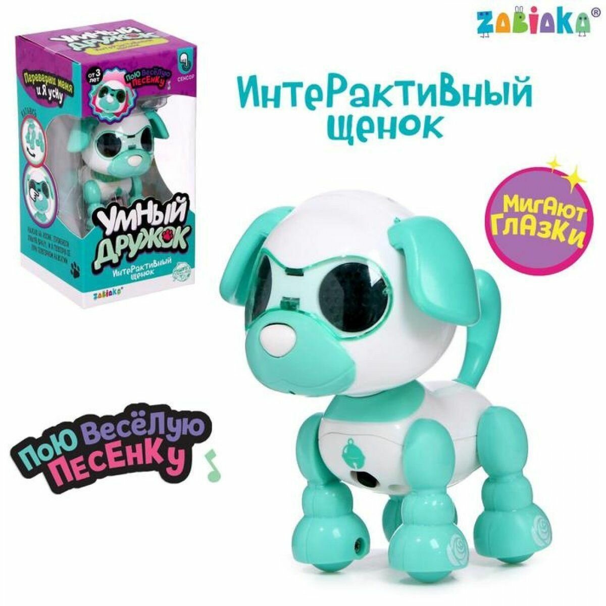 СохранитьРобот собака «Умный дружок», интерактивный: с записью звуков, свет, звук, сенсорный, музыкальный, на батарейках, бирюзовый интересное: