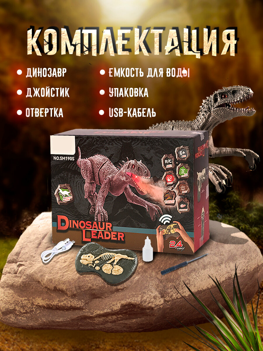 Большой интерактивный робот-динозавр на радиоуправлении — Реалистичный динозавр с эффектами света, пара и звука