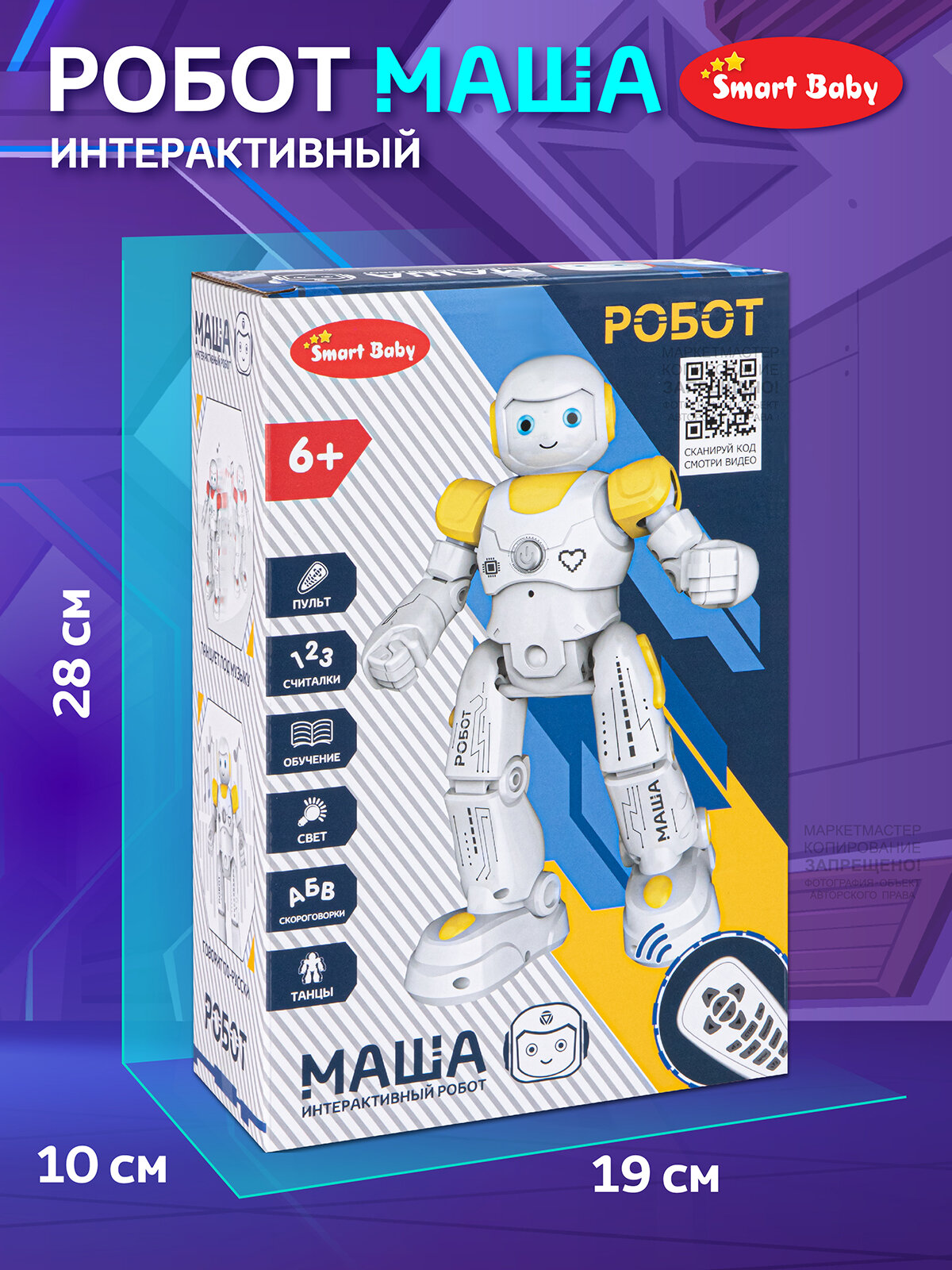 | Дополнительная информация | Интересные факты о космосе, умеет ходить в разные стороны, танцевать под музыку, рассказывать скороговорки, считалочки |