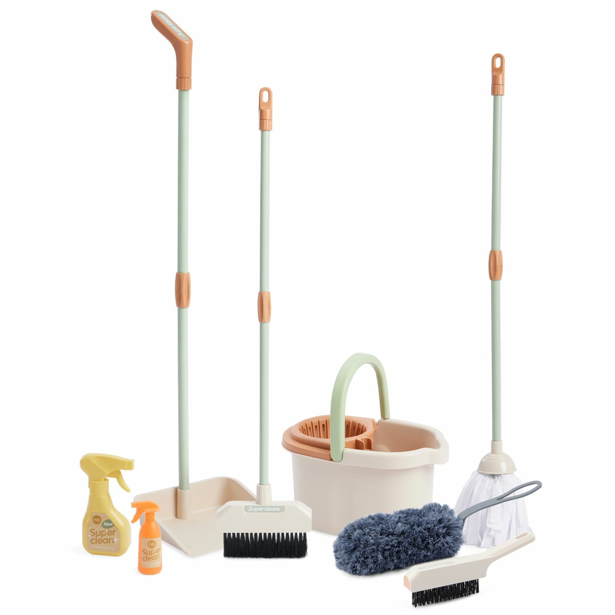 | Комплектация | Ведро - 1 шт. / швабра - 1 шт. / веник - 1 шт. / совок - 1 шт. / щётка - 1 шт. / распылитель - 2 шт / пипидастр - 1 шт. |