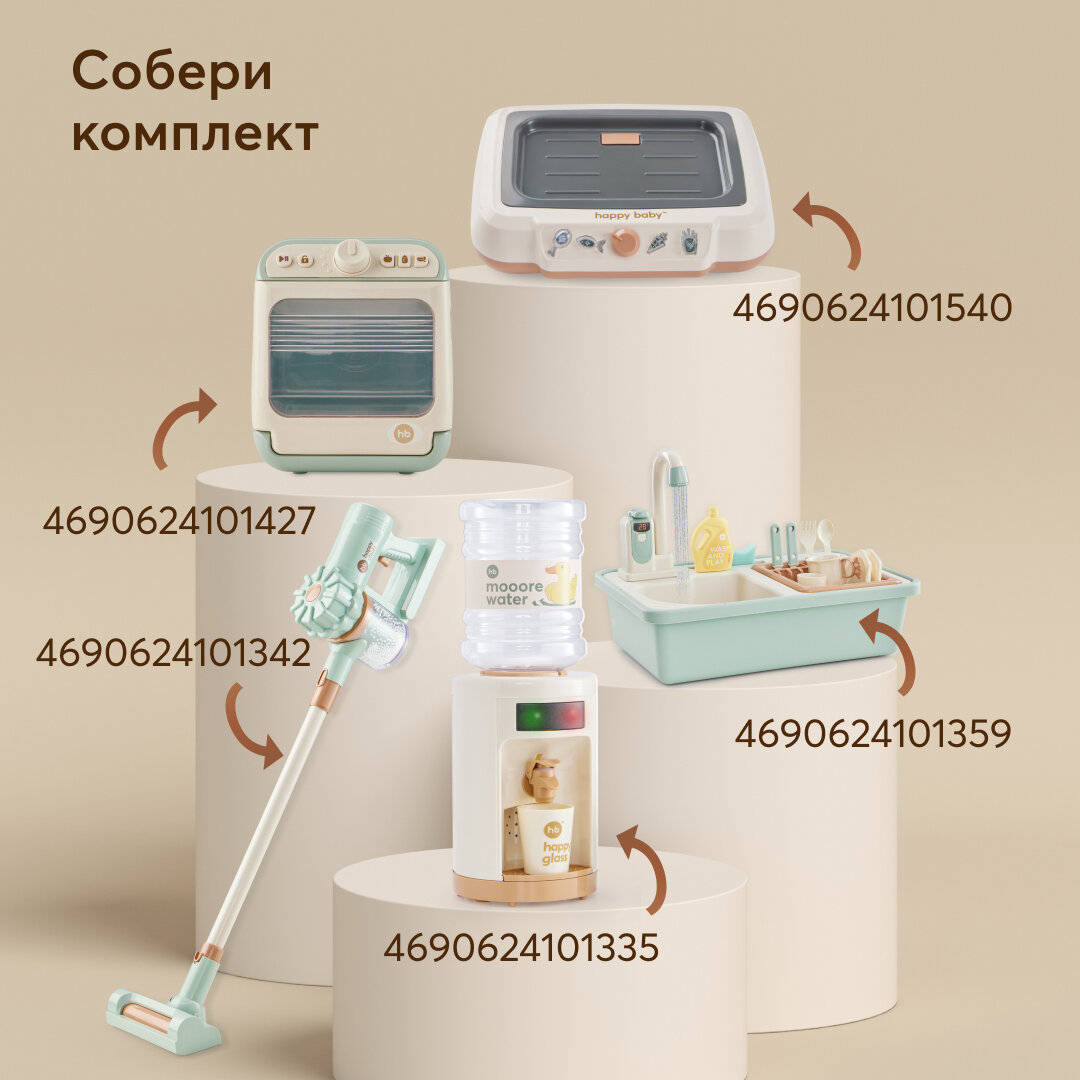331867, Интерактивная игрушка Happy Baby, стиральная машина детская LAUNDRY TIME электронная, вращающийся барабан со звуковыми эффектами, бежевый интересное: