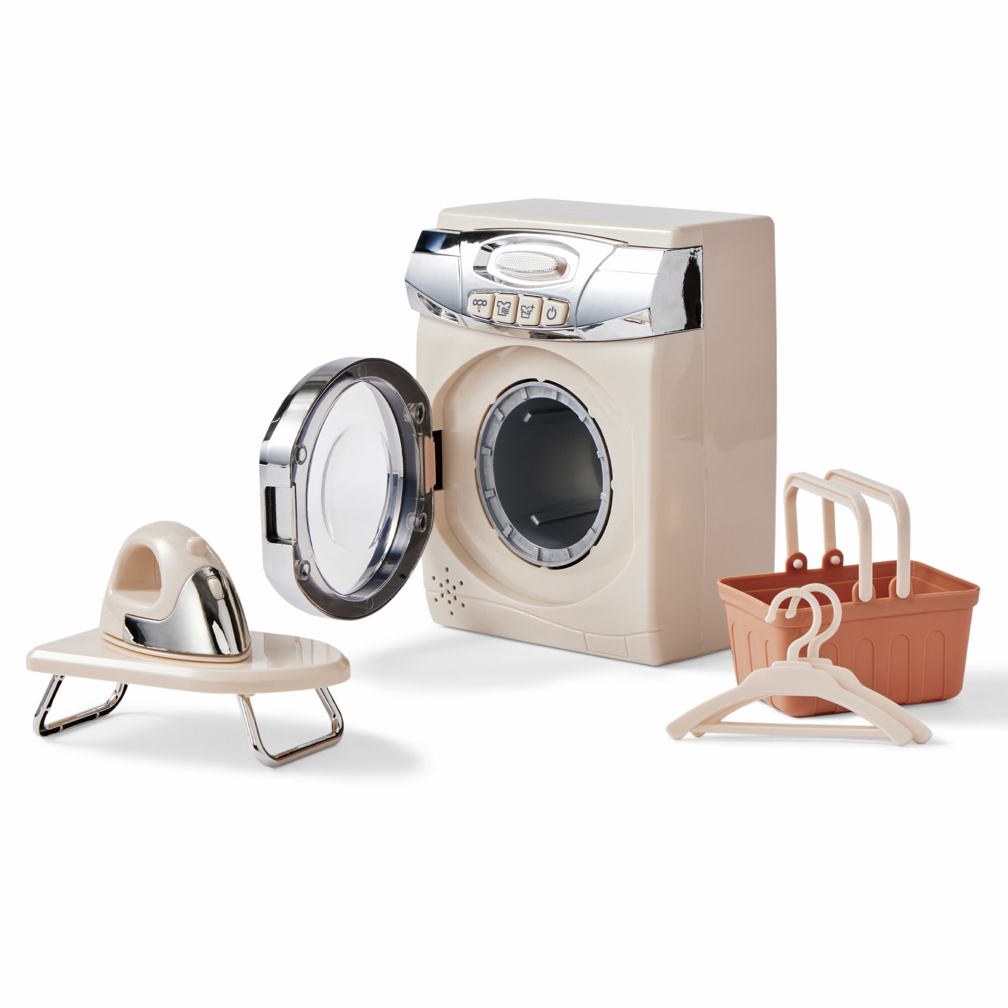 Купить 331867, Интерактивная игрушка Happy Baby, стиральная машина детская LAUNDRY TIME электронная, вращающийся барабан со звуковыми эффектами, бежевый