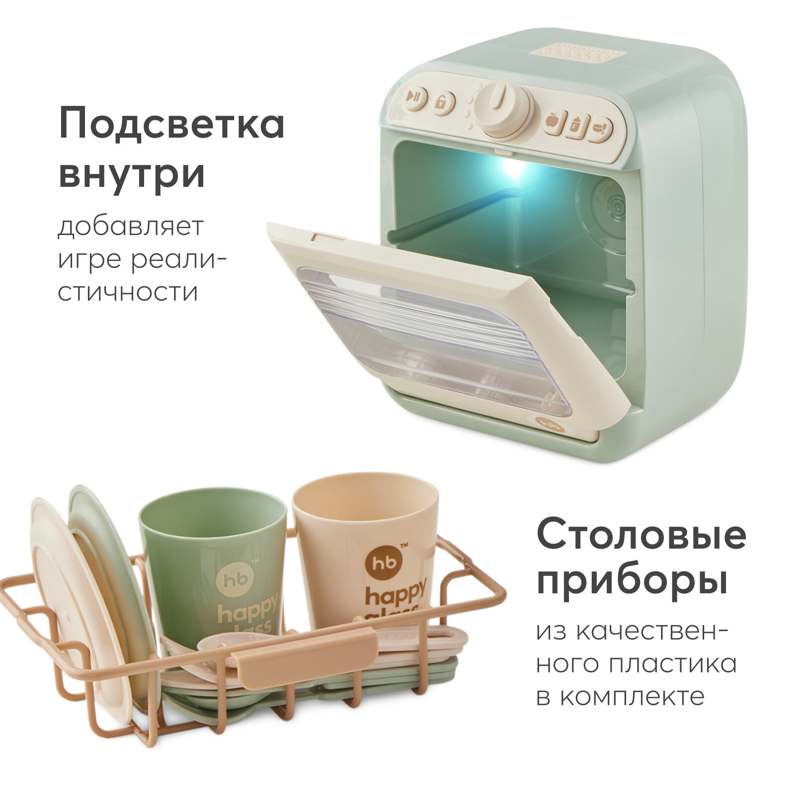 331920, Игрушка посудомойка детская Happy Baby для игровой детской кухни, с водой, набор 12 шт, зеленая интересное: