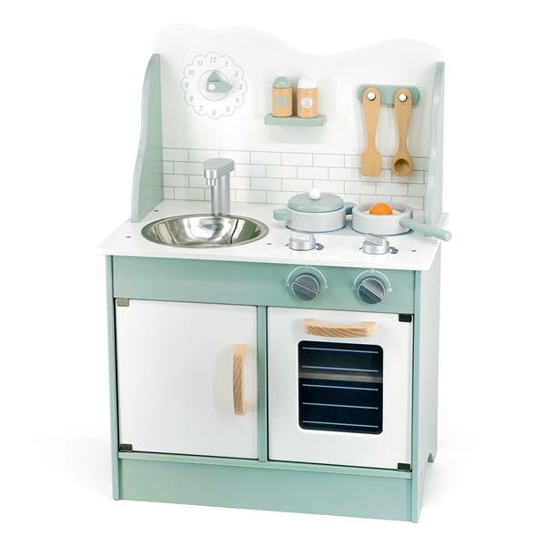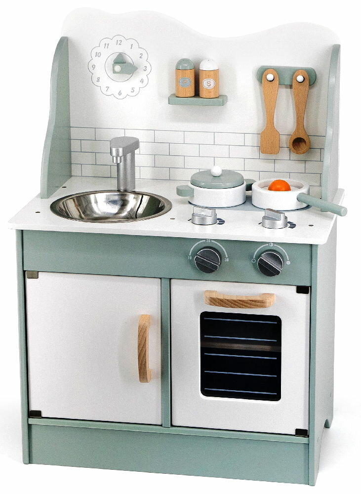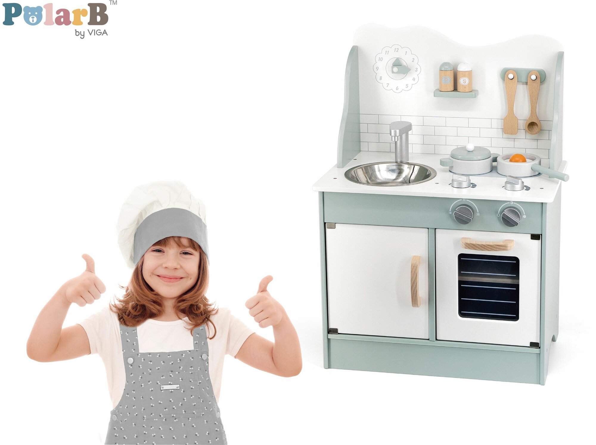 Viga Toys Детская кухня из дерева с аксессуарами PolarB зеленая в коробке 44048